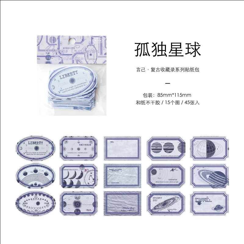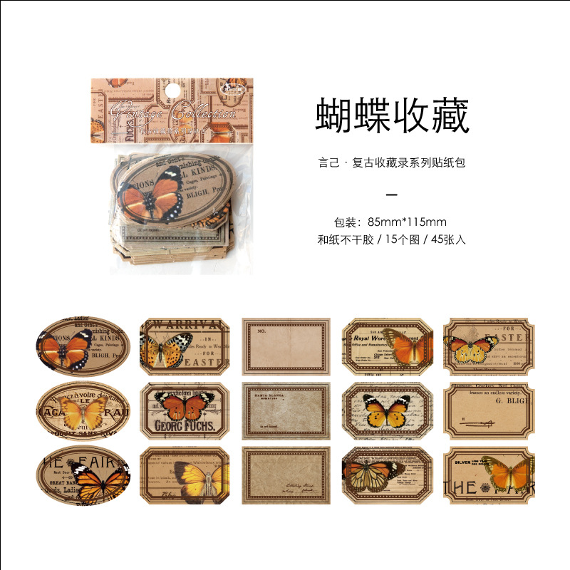 Yanji 레트로 컬렉션 시리즈 스티커 팩 DIY 핸드북 장식 재료 스티커 45개 8가지 스타일스토어 가기