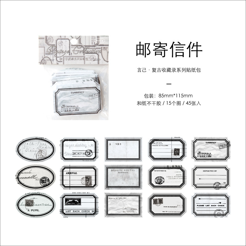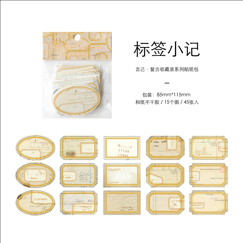 Yanji 레트로 컬렉션 시리즈 스티커 팩 DIY 핸드북 장식 재료 스티커 45개 8가지 스타일