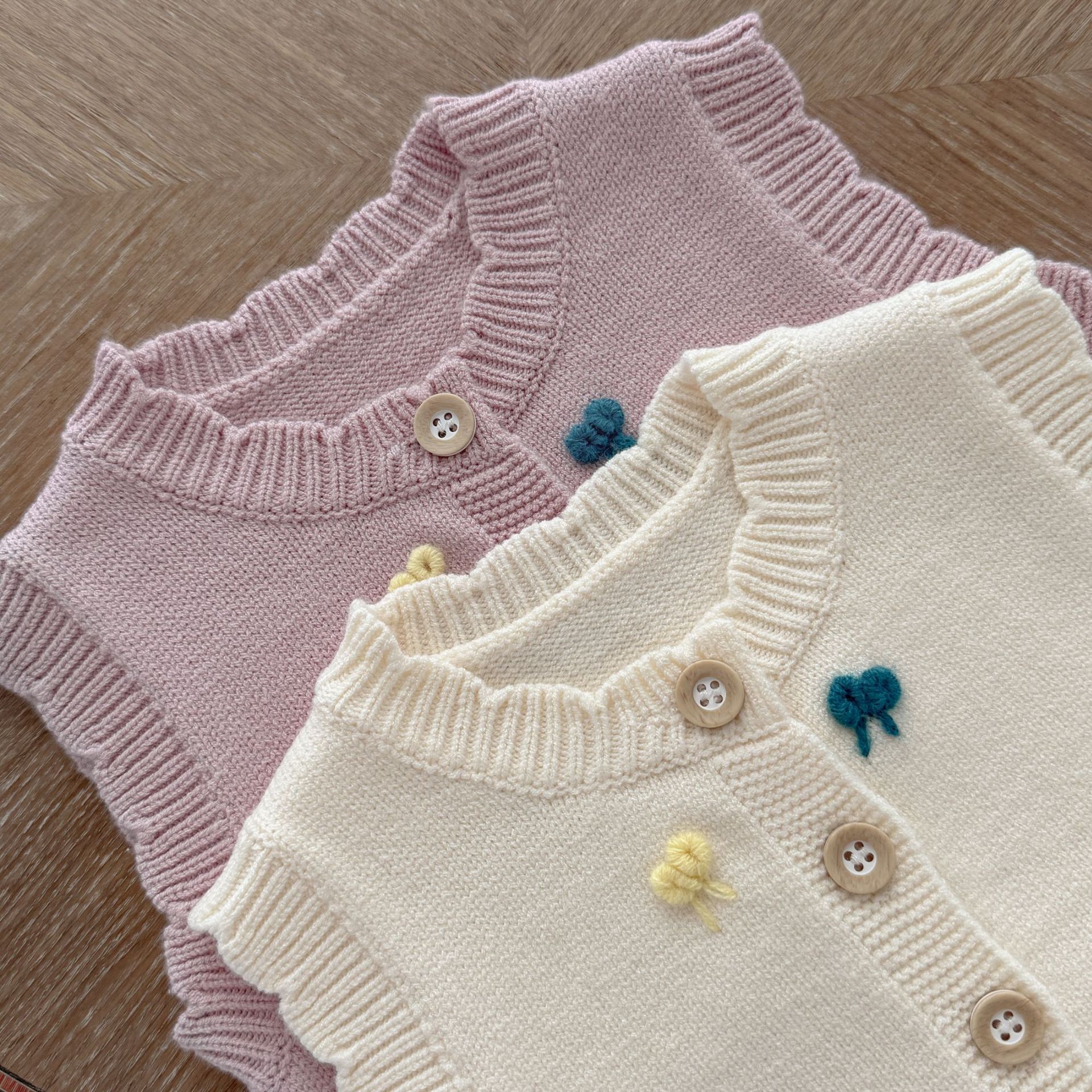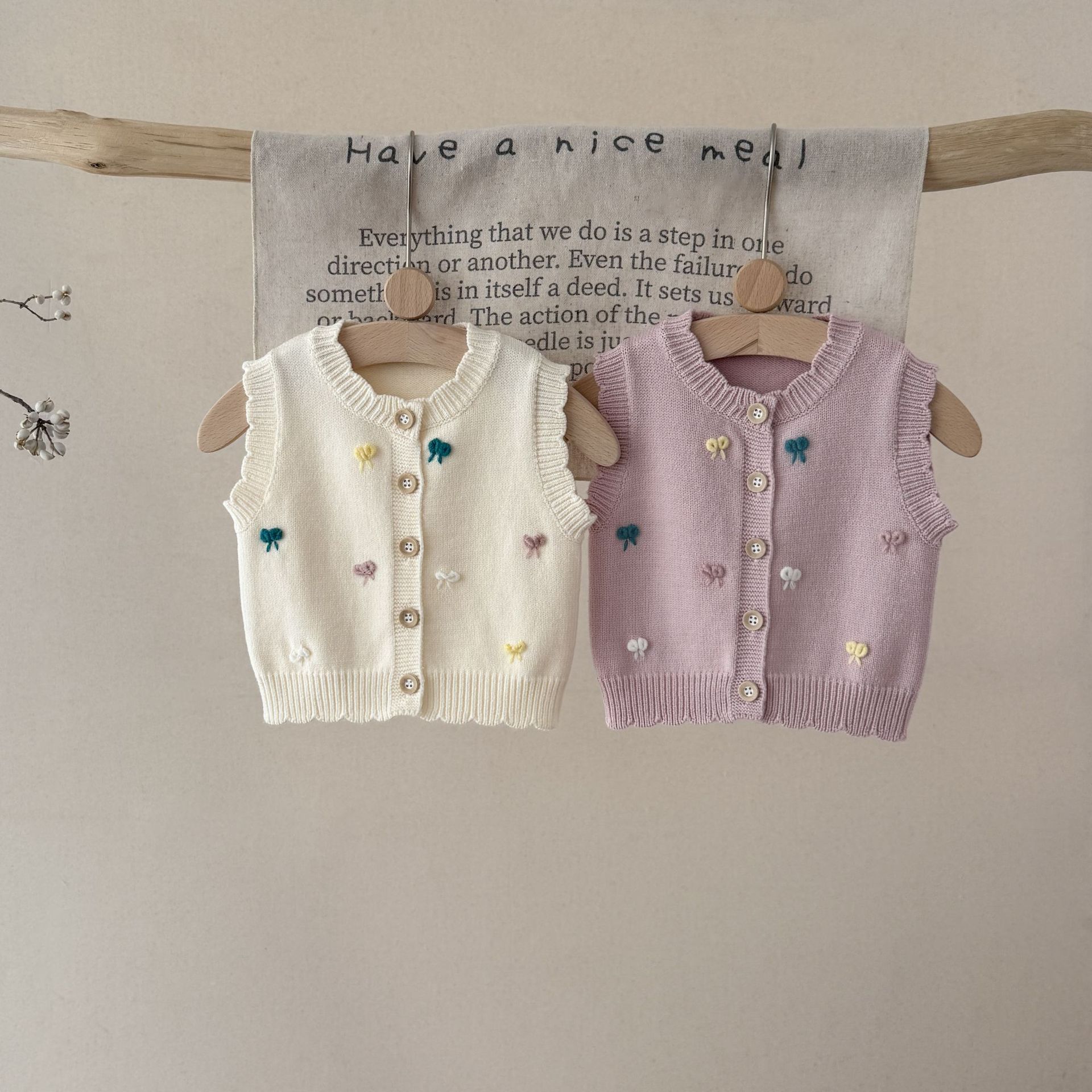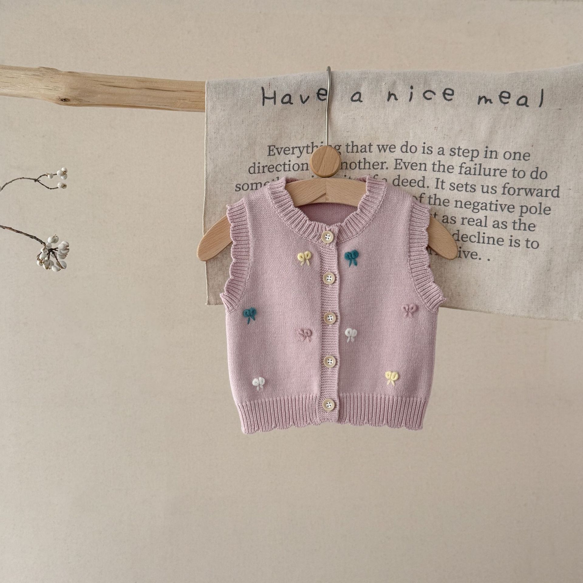 봄과 가을 유아용 0-3세 여아 조끼 다용도 수제 자수 리본 니트 가디건 조끼
