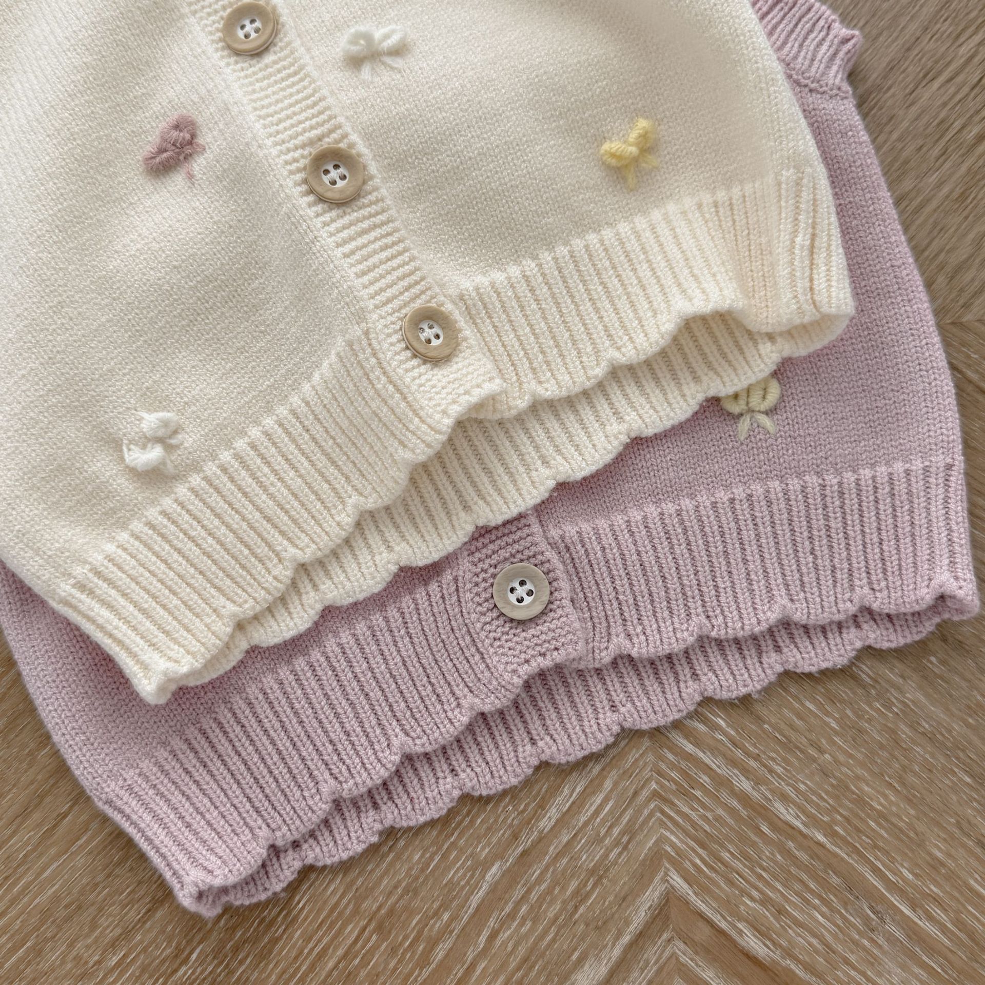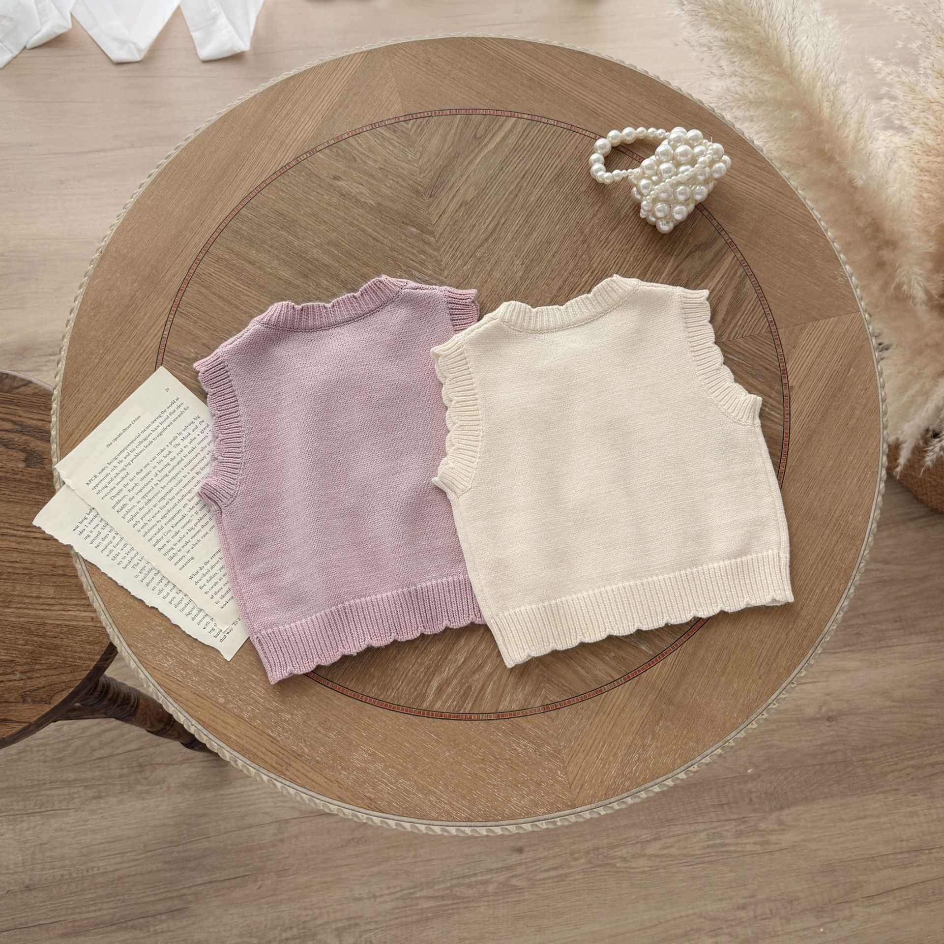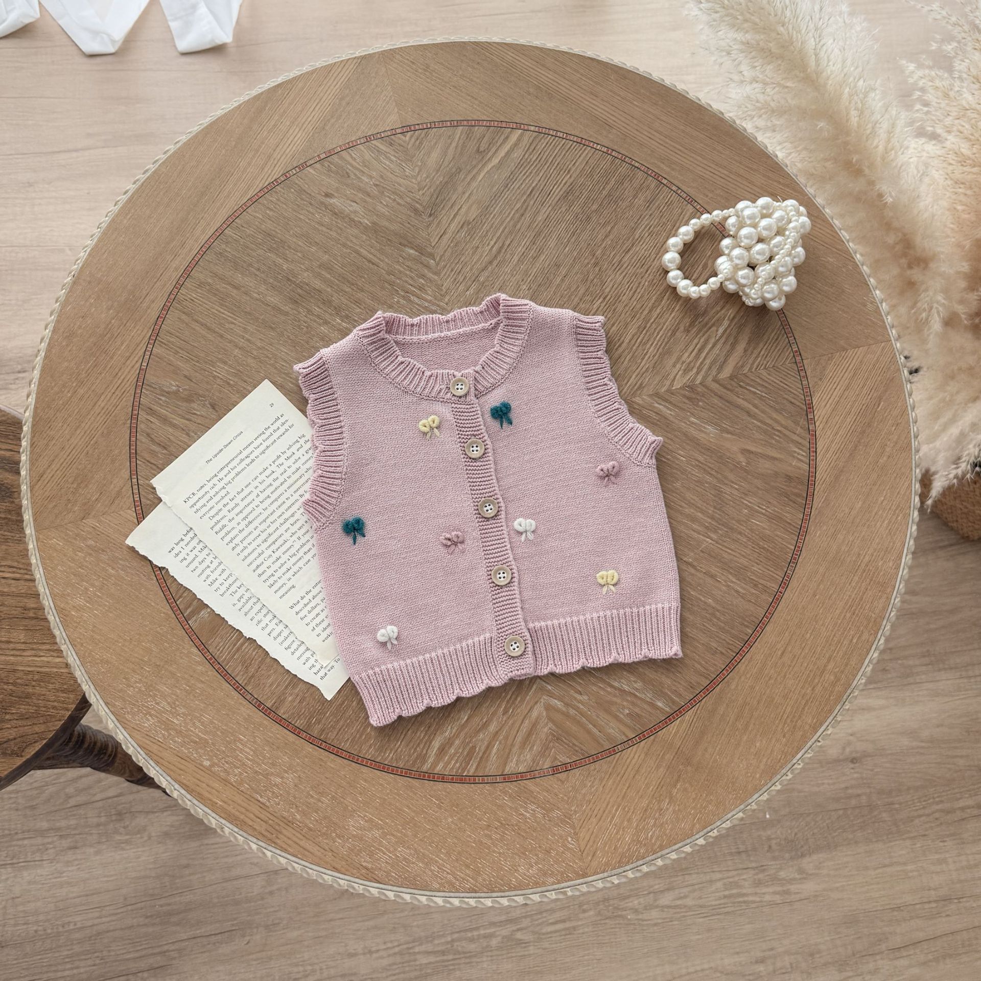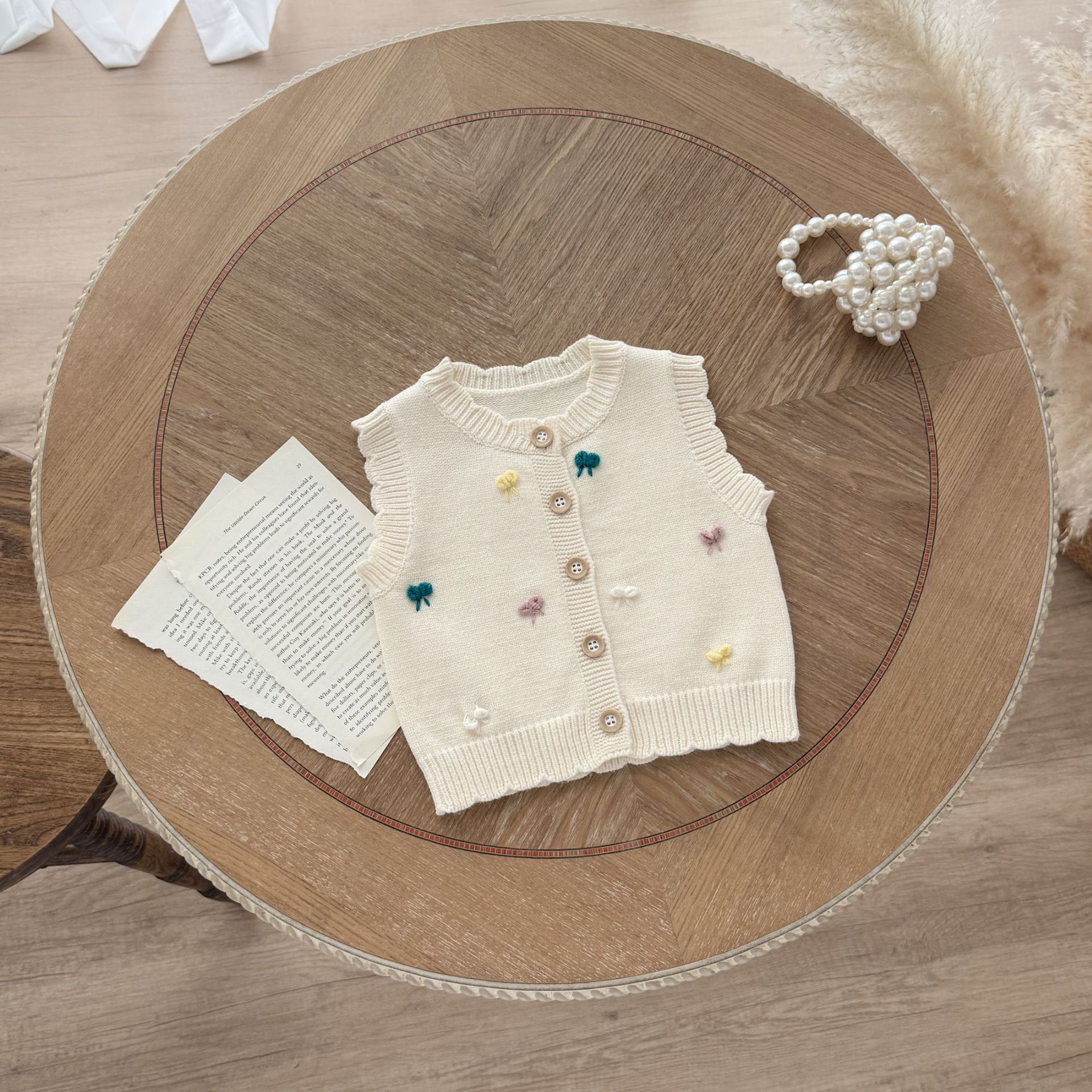 봄과 가을 유아용 0-3세 여아 조끼 다용도 수제 자수 리본 니트 가디건 조끼
