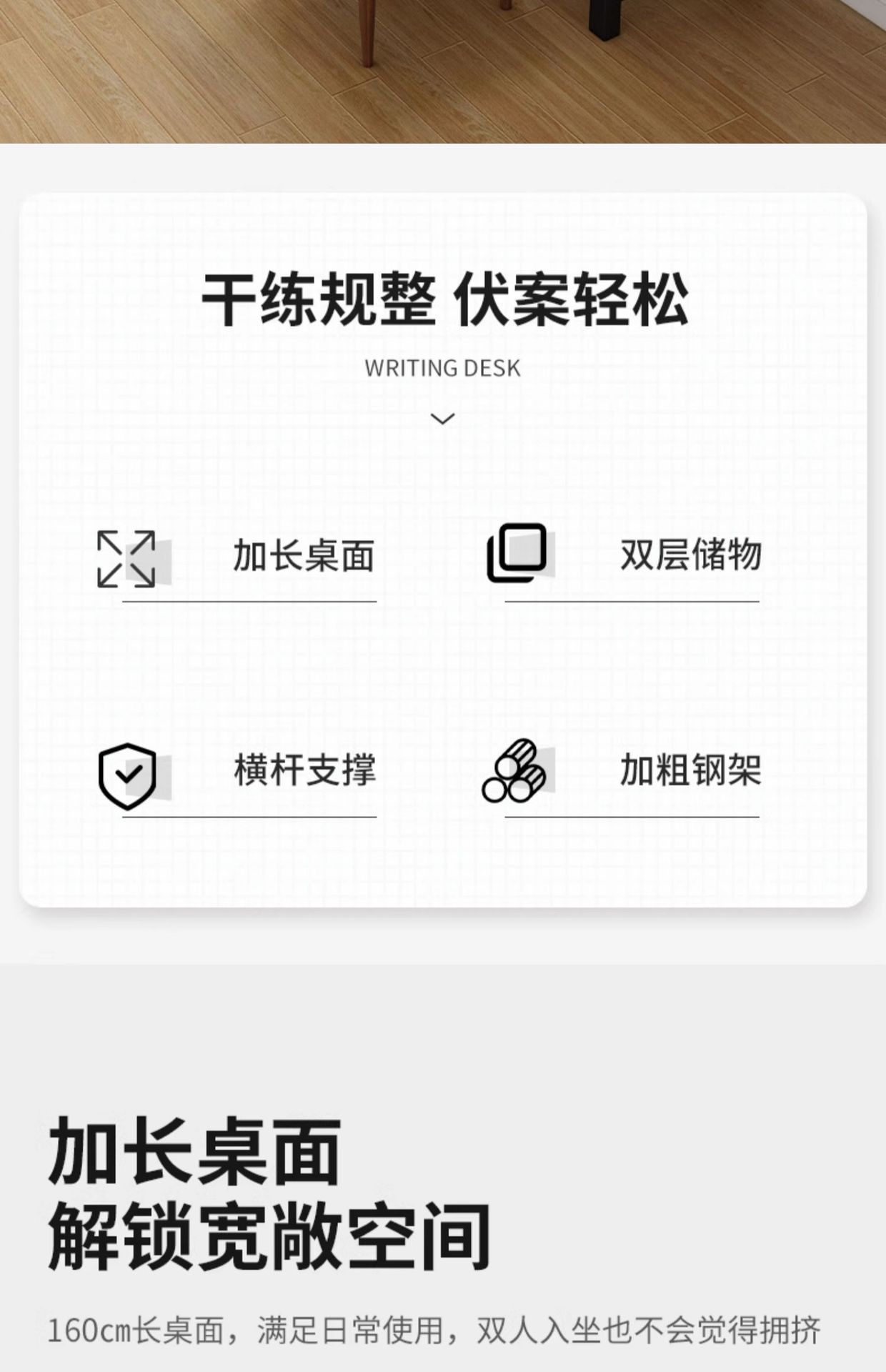• [업그레이드된 두꺼운 철제 프레임과 두꺼워진 데스크탑] 더블 레이어 브러시드 블랙 오크 컬러 160CM [안전한 둥근 모서리]