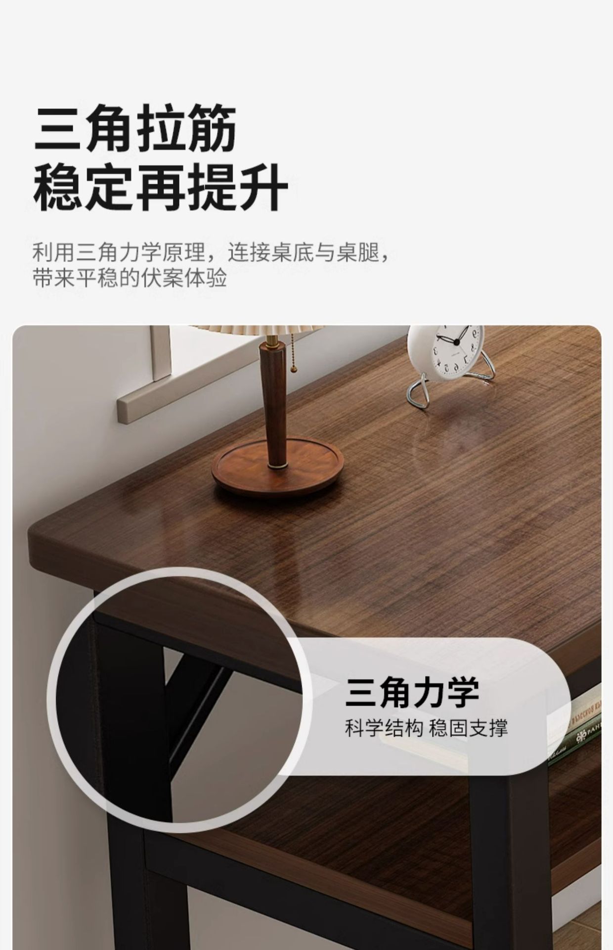 • [업그레이드된 두꺼운 철제 프레임과 두꺼워진 데스크탑] 더블 레이어 브러시드 블랙 오크 컬러 100CM [안전한 둥근 모서리]