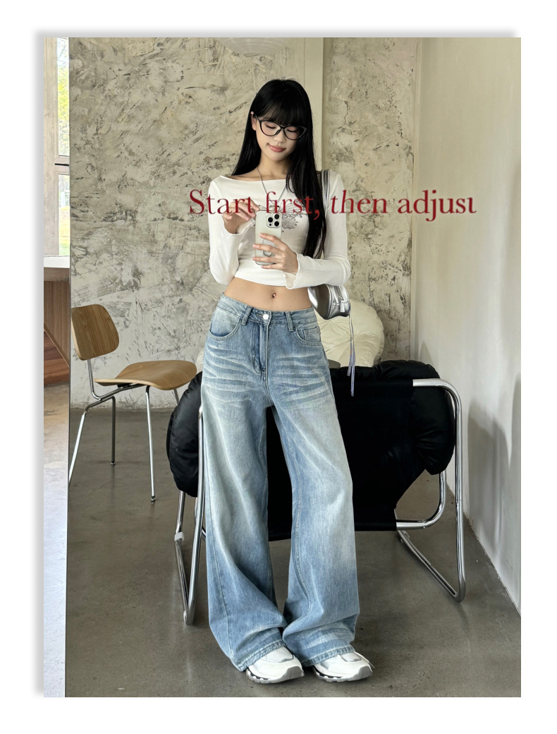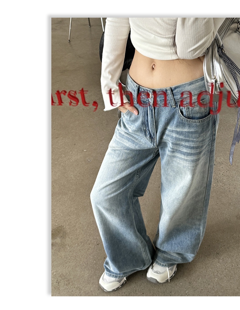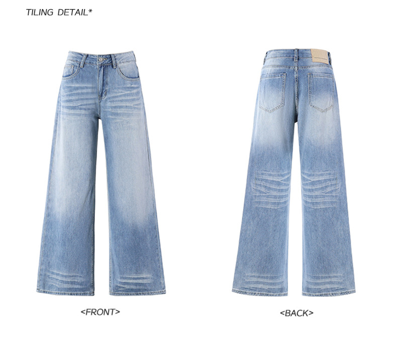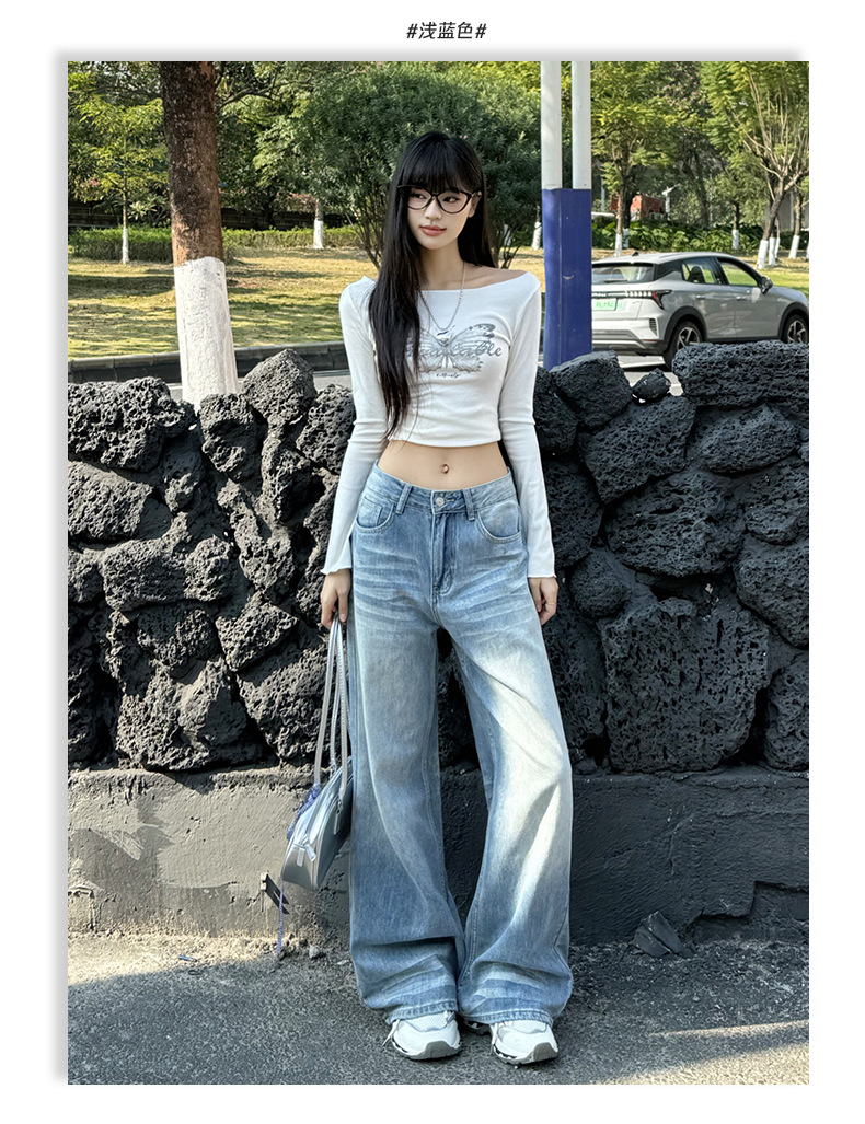 ZNZW 여성용 라이트 블루 청바지 2025 여성용 새로운 루즈 워시 올드 스크래치 하이 웨이스트 스트레이트 와이드 레그 팬츠스토어 가기