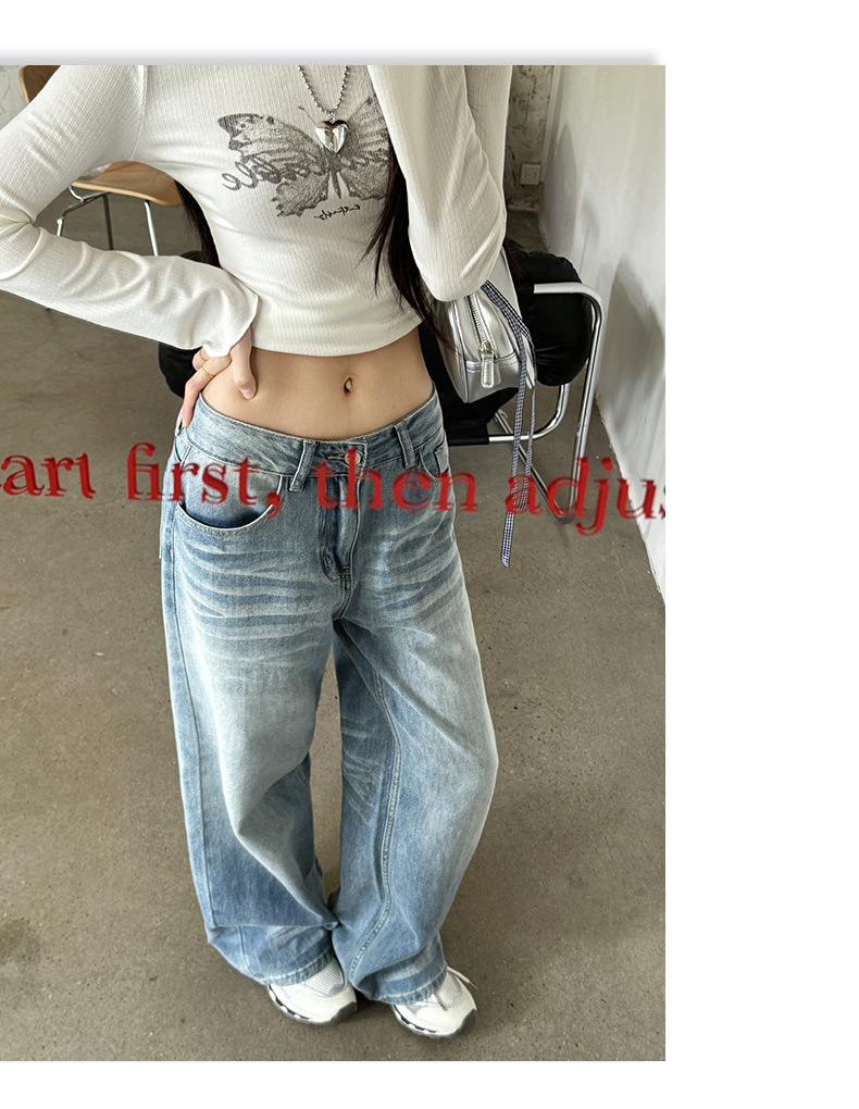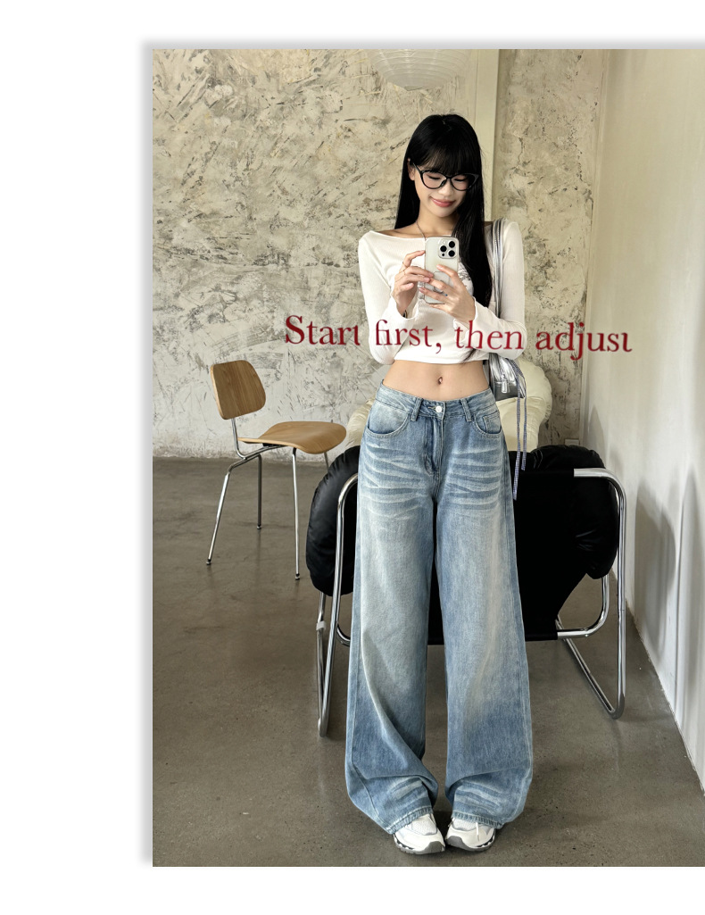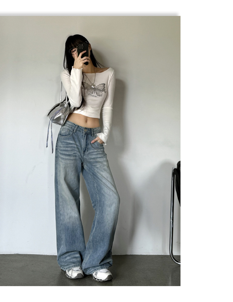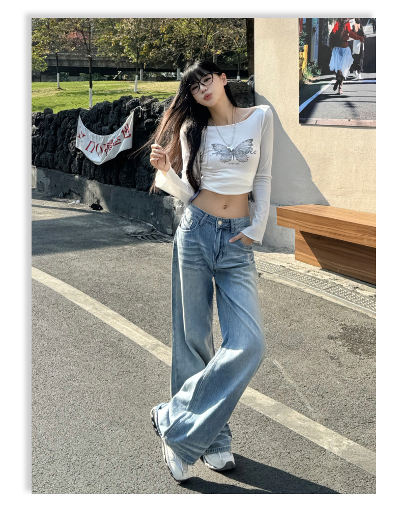 ZNZW 여성용 라이트 블루 청바지 2025 여성용 새로운 루즈 워시 올드 스크래치 하이 웨이스트 스트레이트 와이드 레그 팬츠스토어 가기