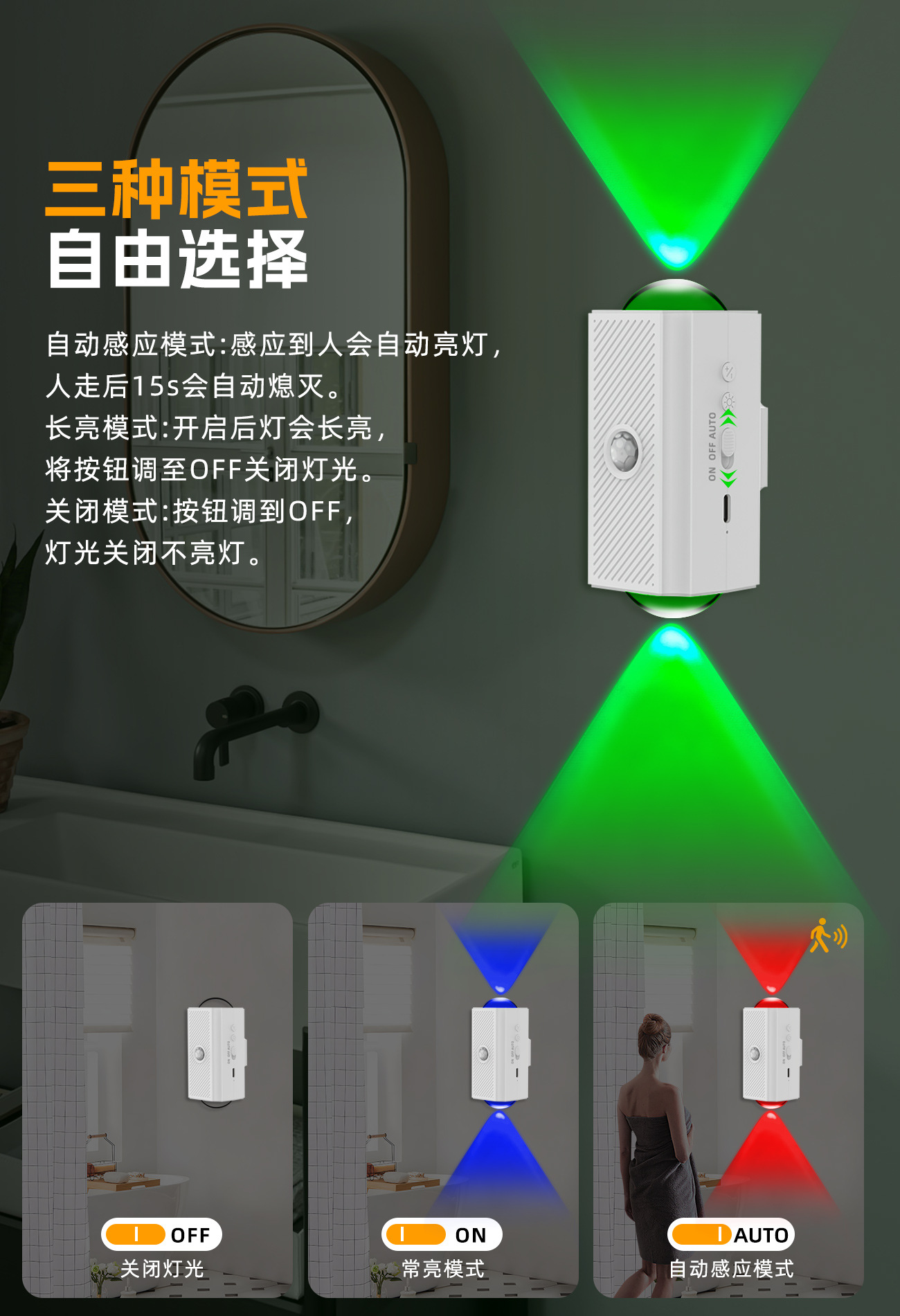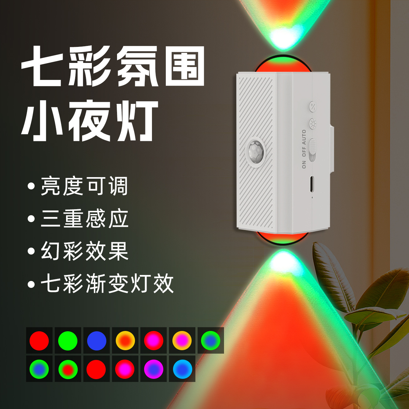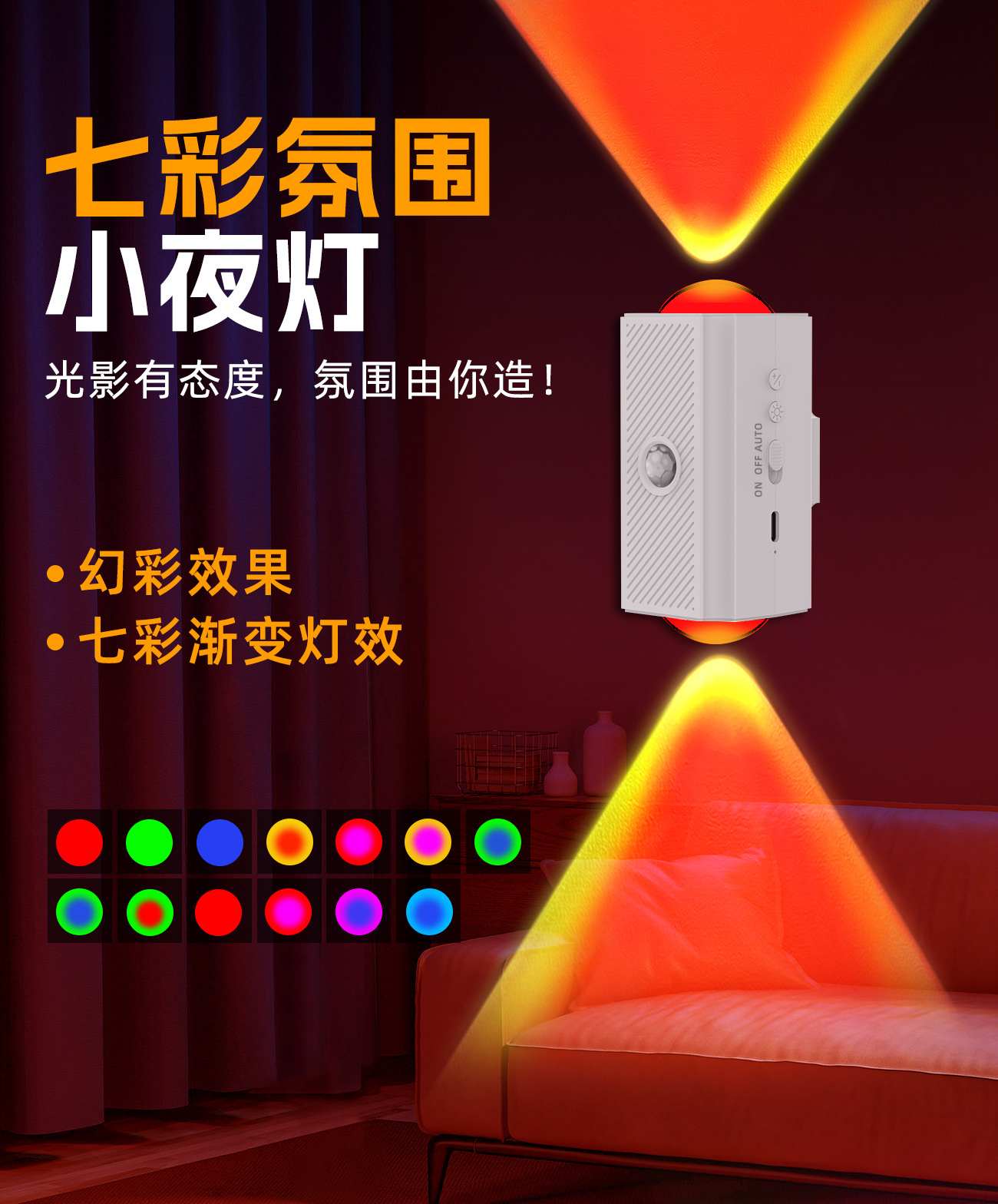국경 간 신제품 다채로운 분위기 양방향 벽 램프 자기 인체 유도 야간 조명 충전식 조명 침실 램프스토어 가기