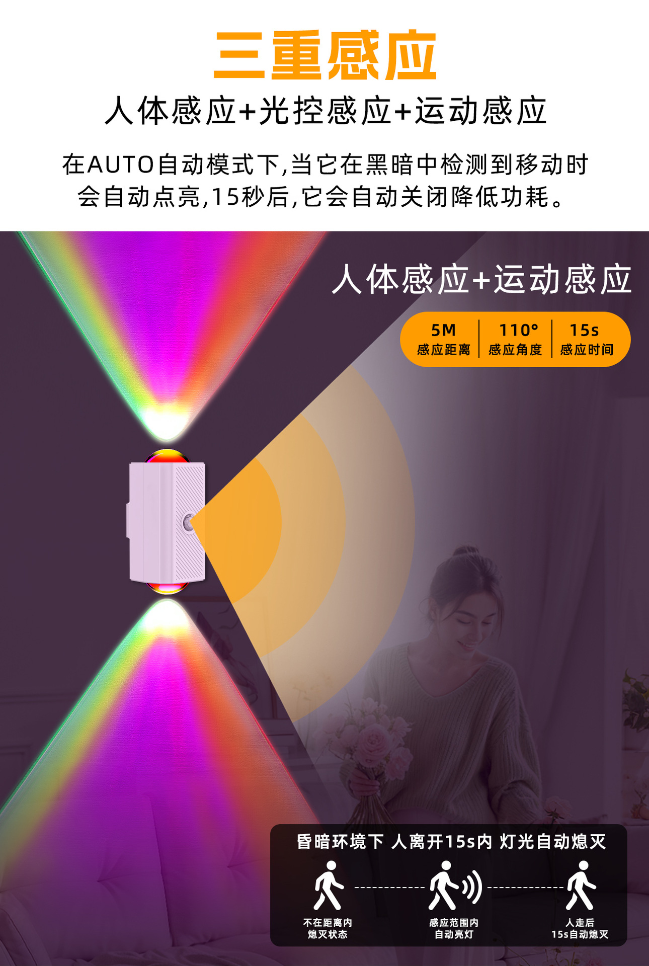 국경 간 신제품 다채로운 분위기 양방향 벽 램프 자기 인체 유도 야간 조명 충전식 조명 침실 램프