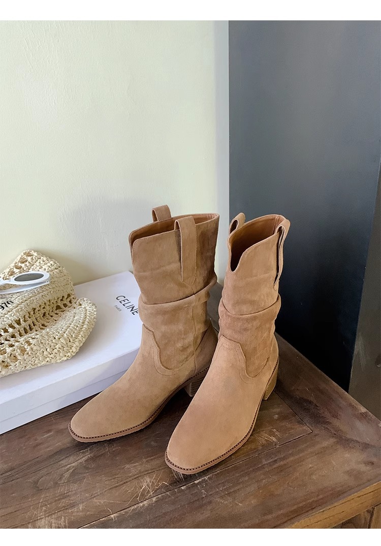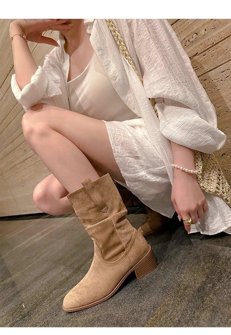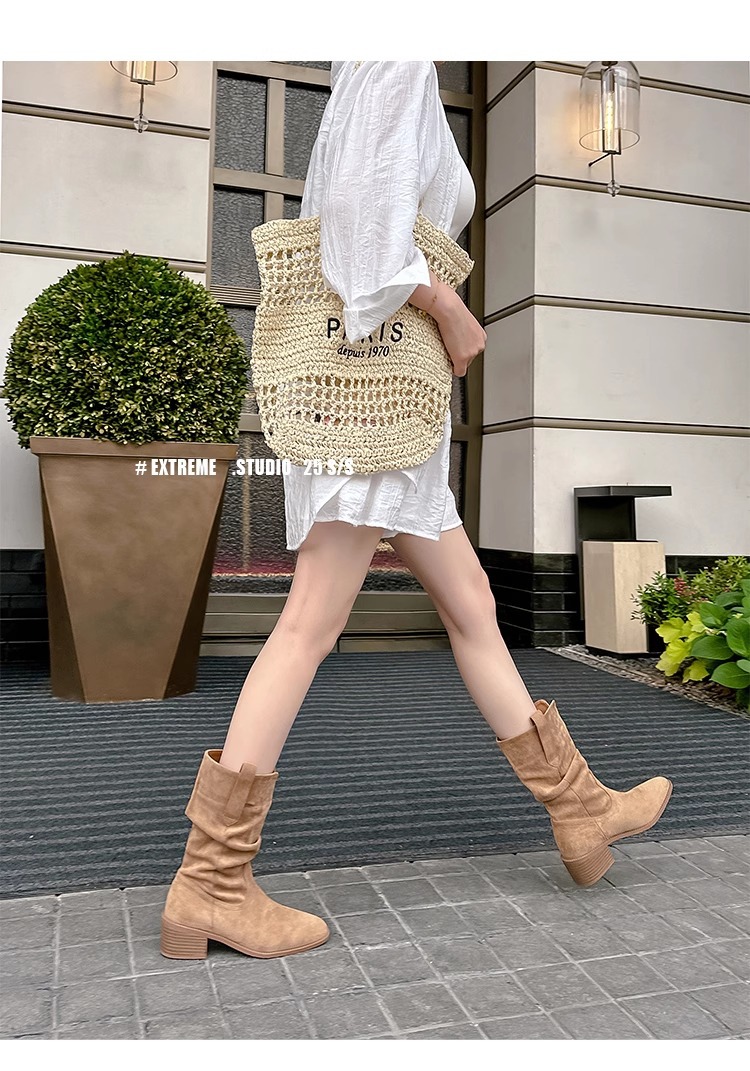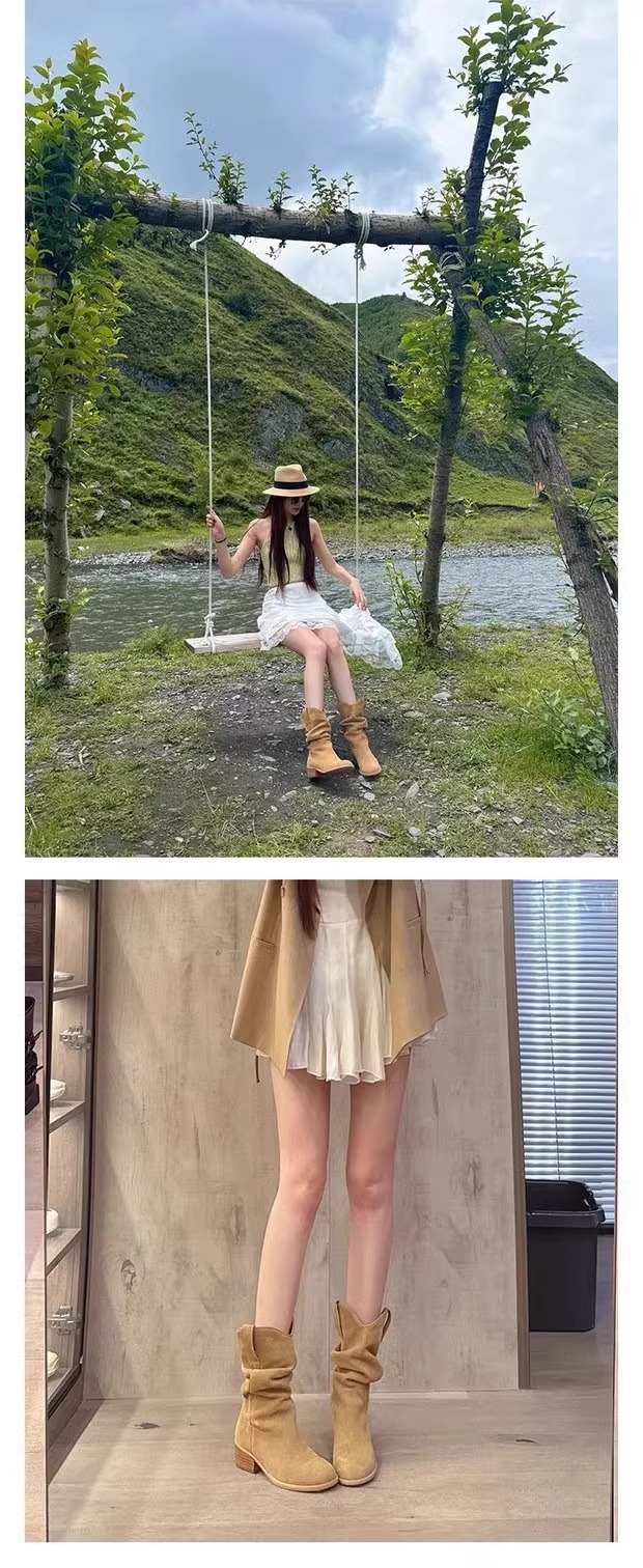 몸집이 작은 여성을 위한 고품질 마틴 부츠, 2025년 봄 신상 하이힐 미드카프 숏부츠, 푸시업 부츠스토어 가기