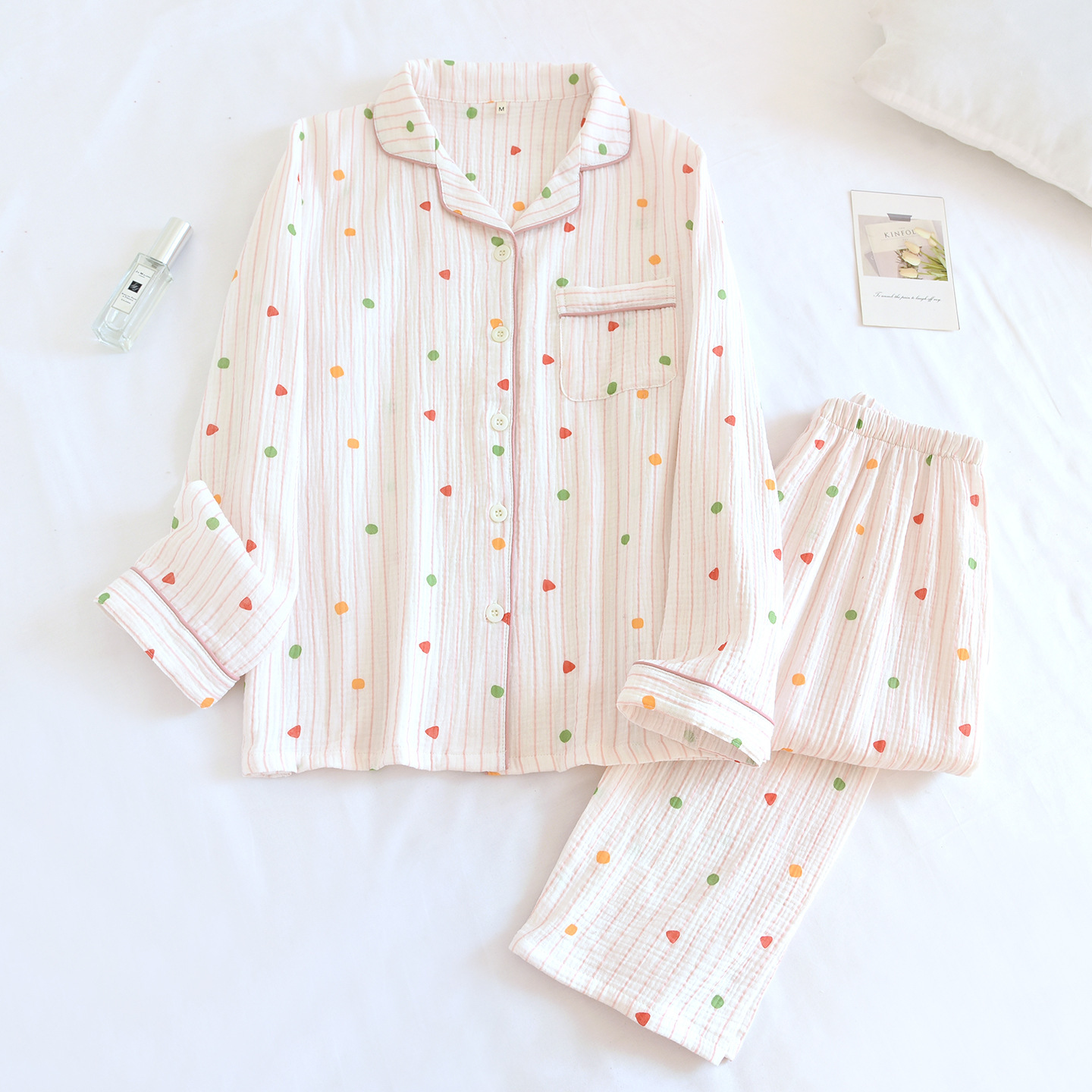 여성용 순면 잠옷, 봄, 가을 얇은 북유럽 스타일 긴팔 바지, 야외에서 착용할 수 있는 캐주얼 루즈 홈웨어 슈트