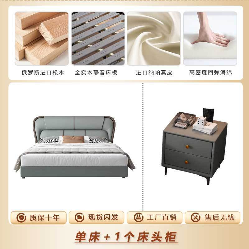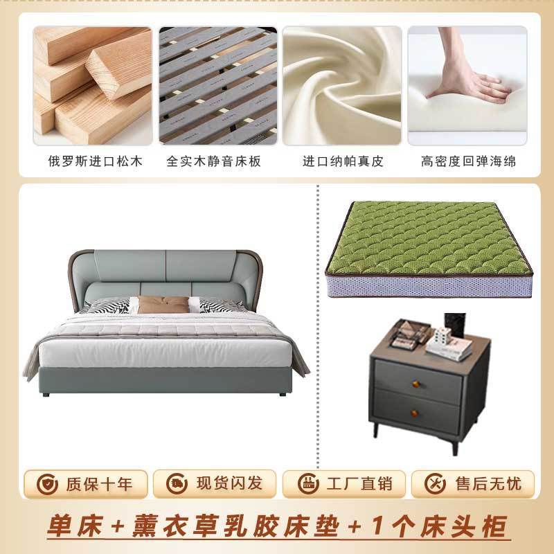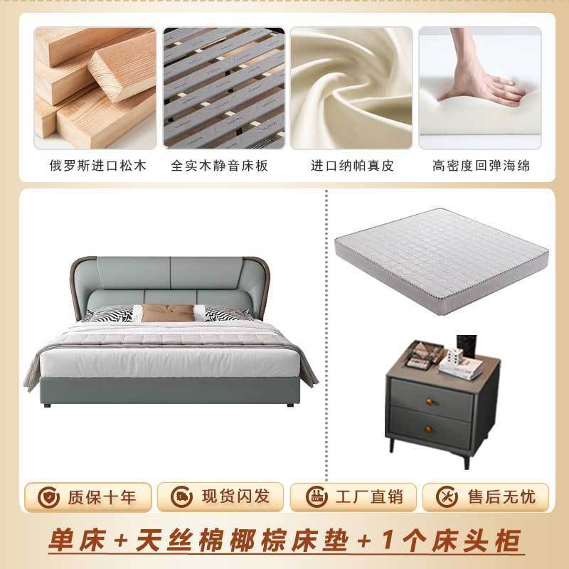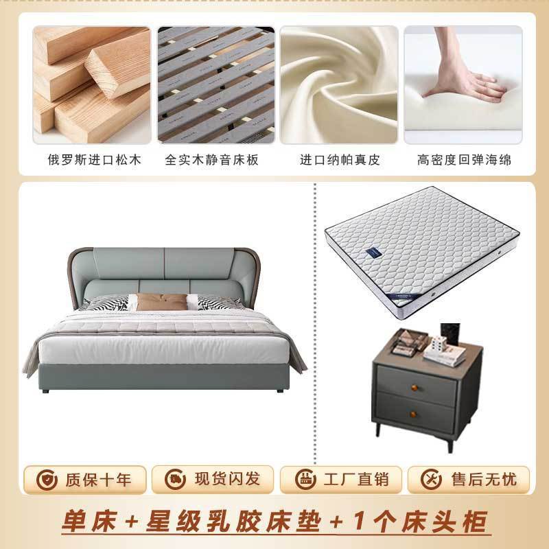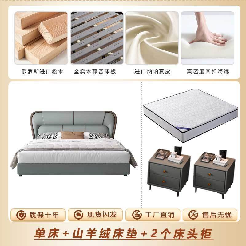 • 가죽 침대+캐시미어 라텍스 스프링 매트리스+캐비닛 x1+프레임 구조