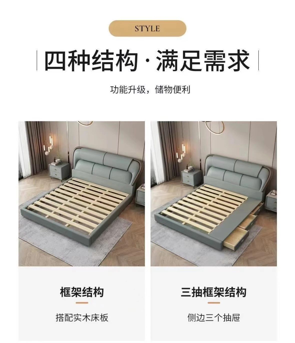 • 가죽 침대 + 캐시미어 라텍스 스프링 매트리스 + 3단 서랍 구조