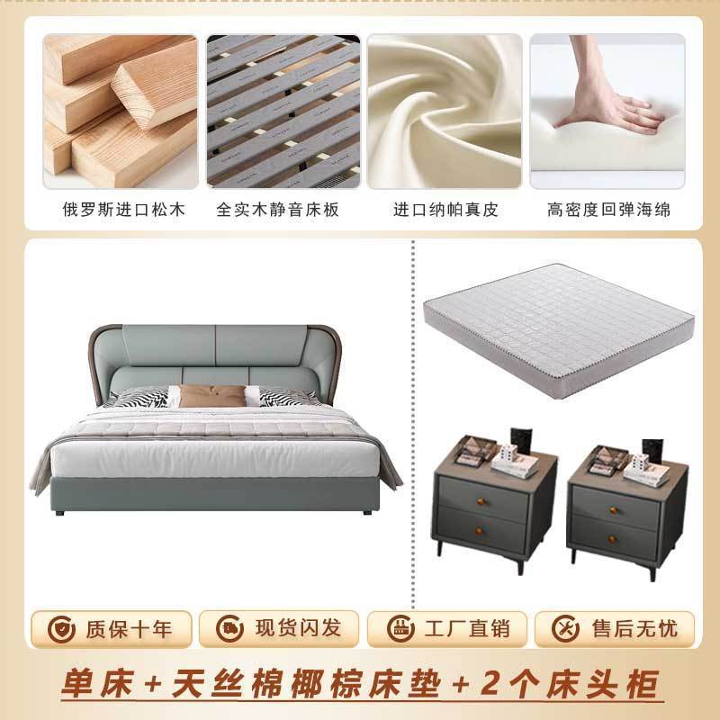 • 가죽 침대 + 텐셀 코튼 척추 보호 코코넛 야자 매트리스 + 캐비닛 x2 + 프레임 구조