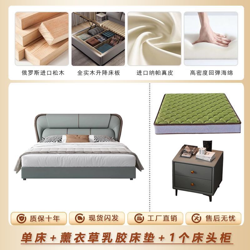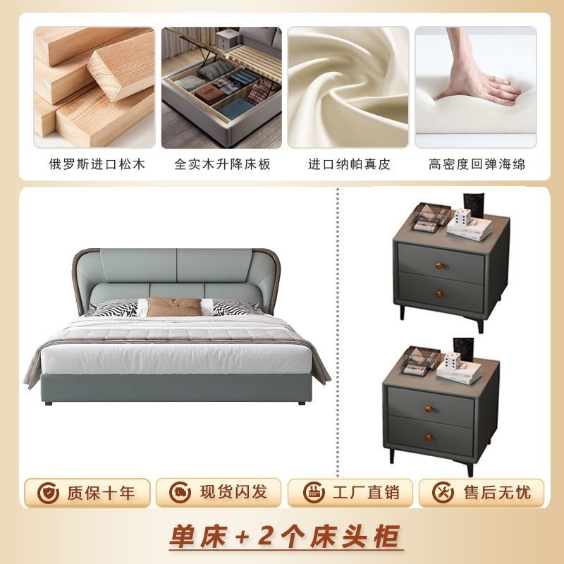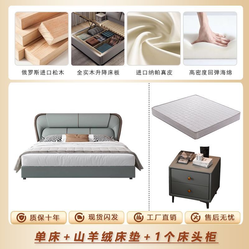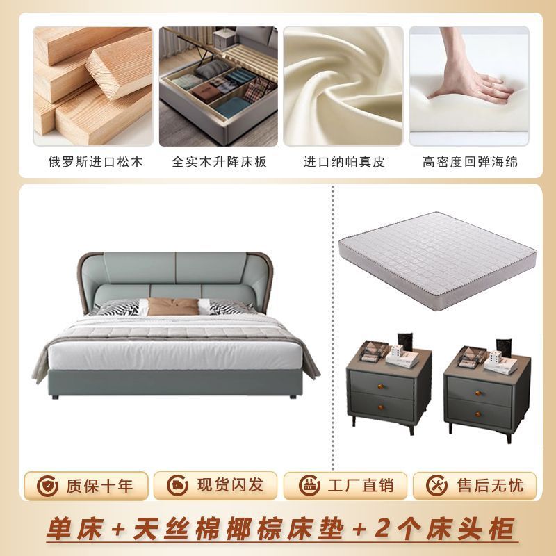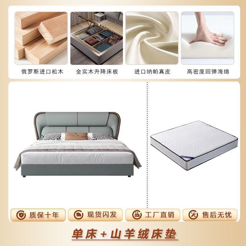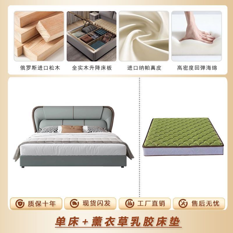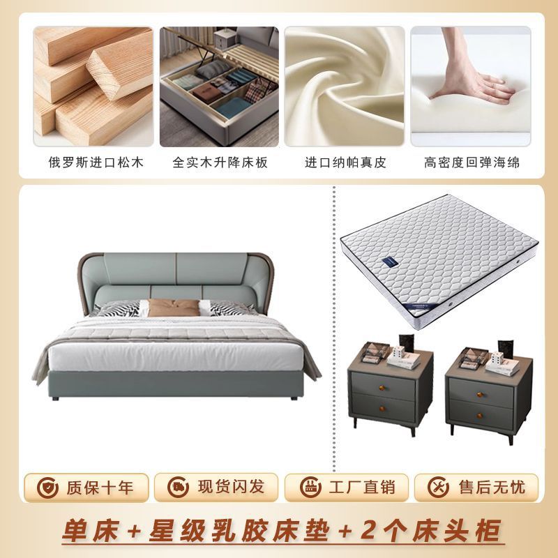• 가죽 침대 + 캐시미어 라텍스 스프링 매트리스 + 캐비닛 x1 + 공기압 구조