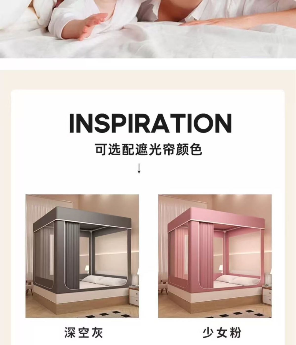 • 딥 스페이스 그레이 [모기장+브래킷+침대커튼]완성세트