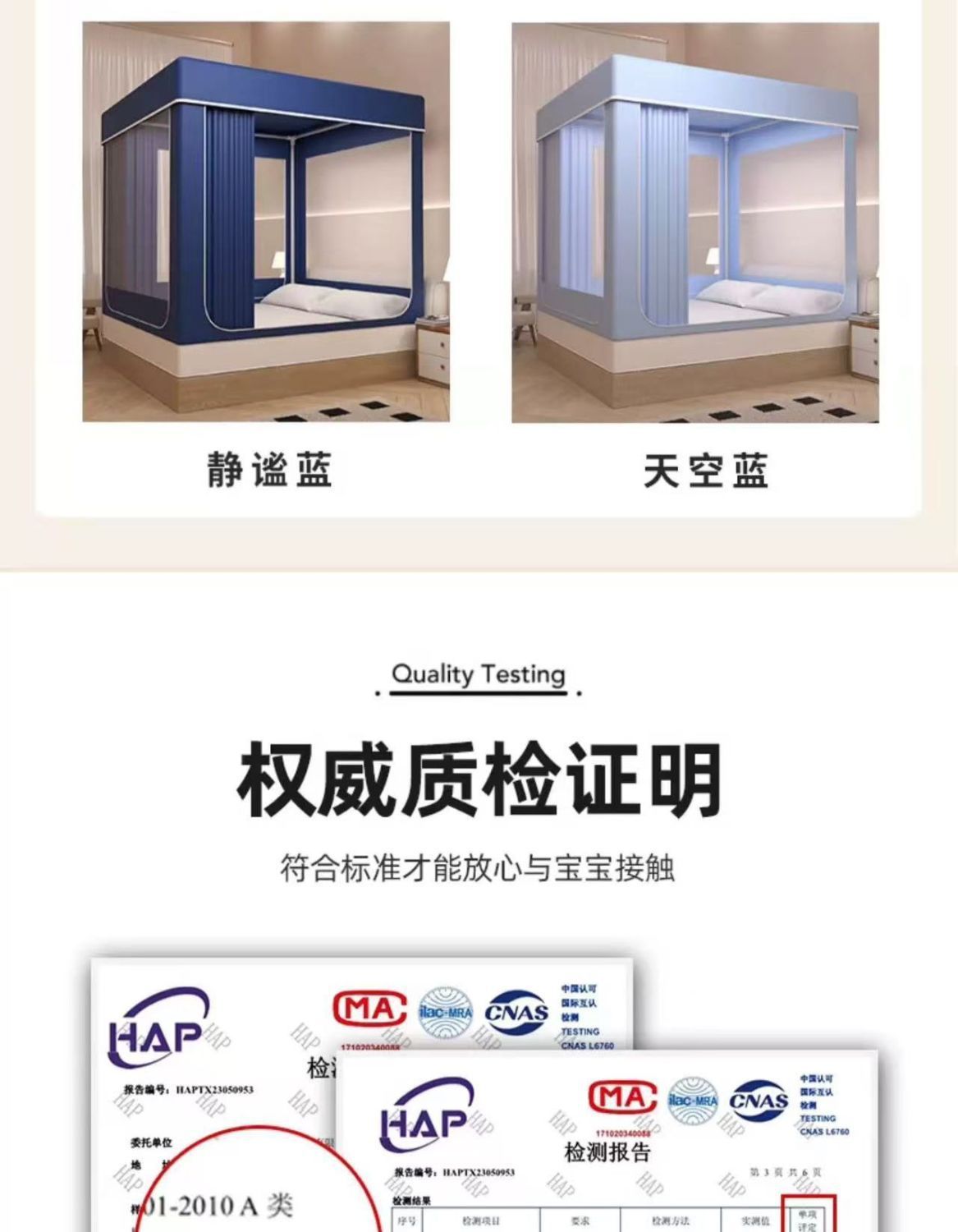 • 네이비블루 [모기장+브래킷] 침대커튼 없음