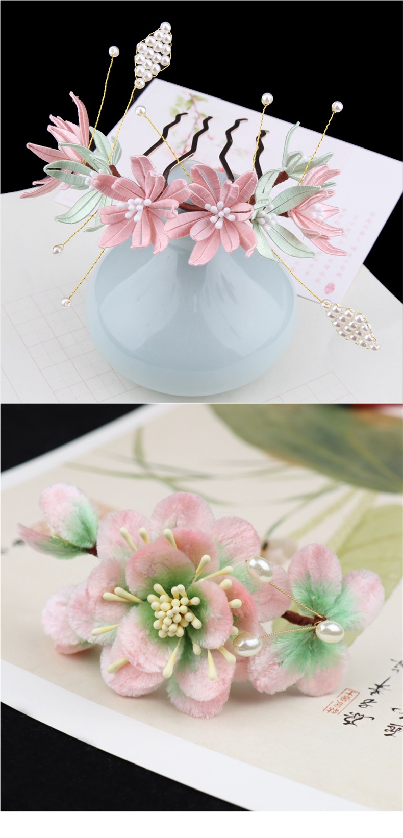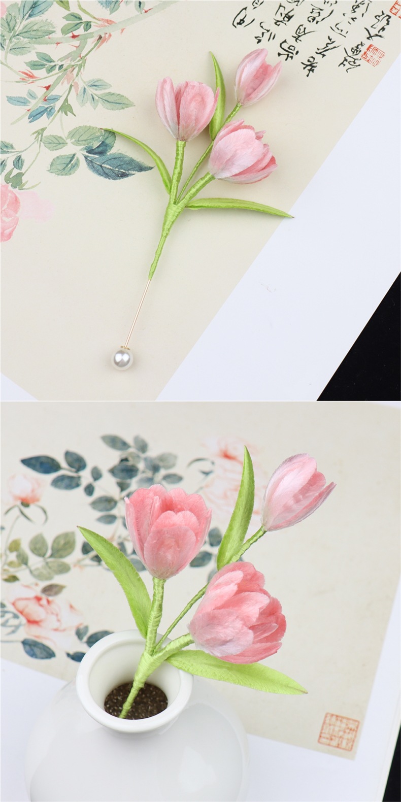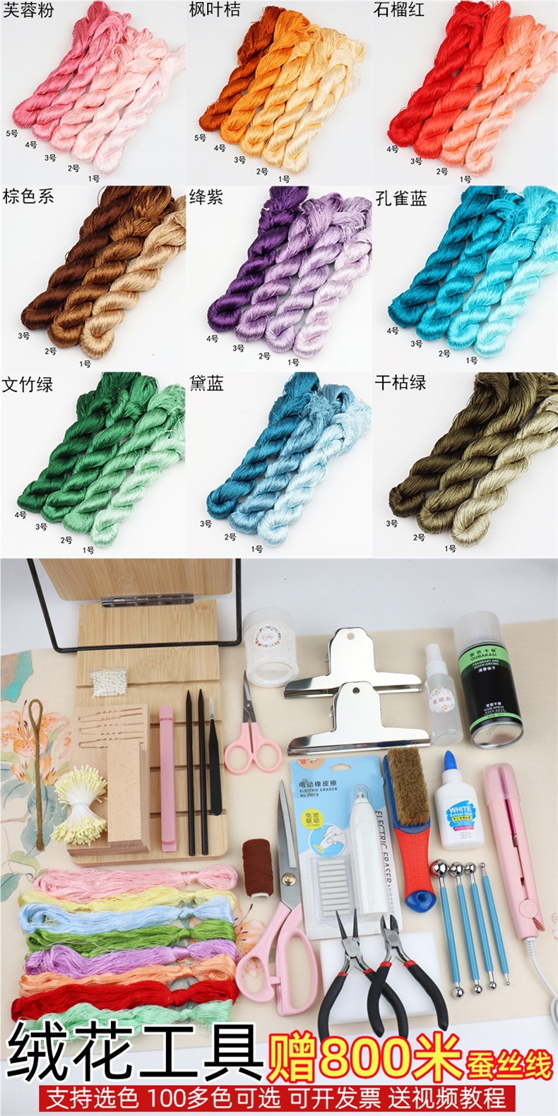 무분할 실크실, 무형문화유산 벨벳 플라워 와인딩 DY 핸드메이드 소재, 무연 실크실, 한복 매칭