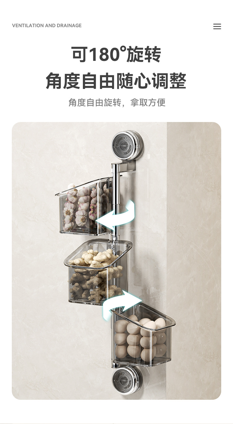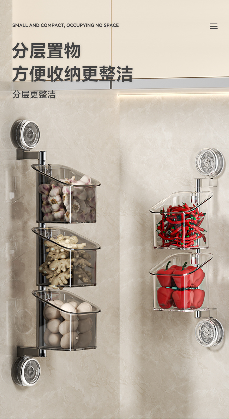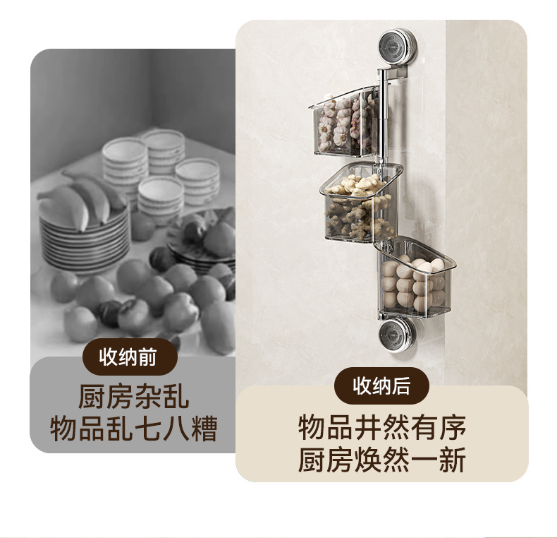 구멍없는 흡입 컵 조미료 보관함 주방 보관함 가정용 양파, 생강 및 마늘 보관함 벽걸이 형 다기능스토어 가기