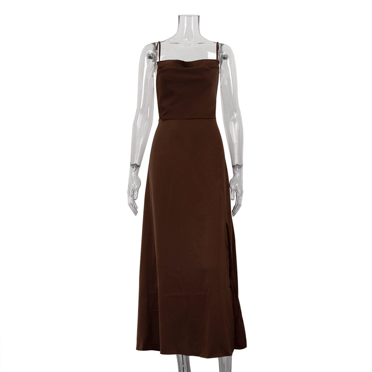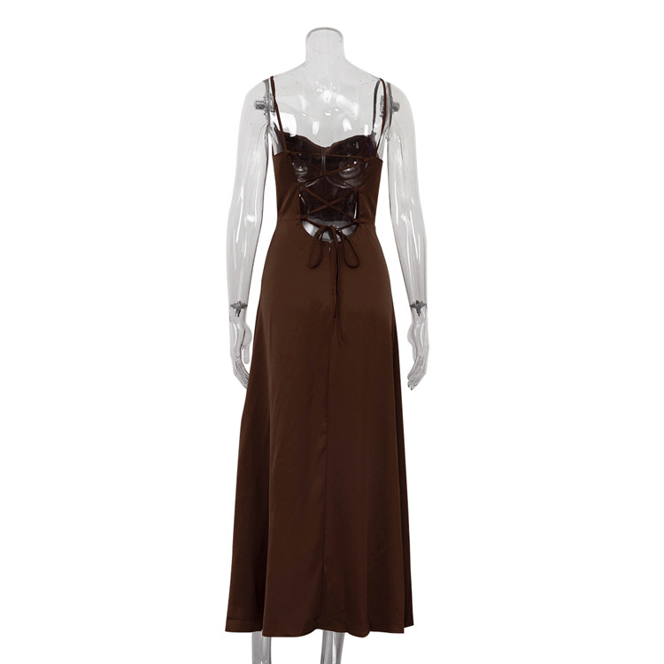 유럽과 미국의 패션 크로스보더 2025 새로운 핫걸 드레스 섹시한 백리스 레이스업 민소매 하이웨이스트 슬릿 서스펜더 스커트스토어 가기