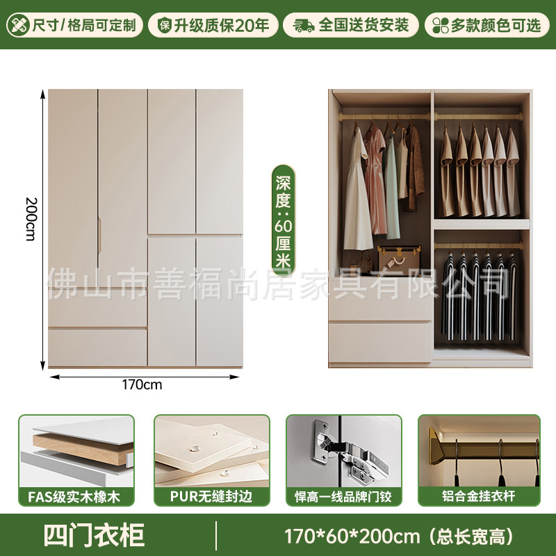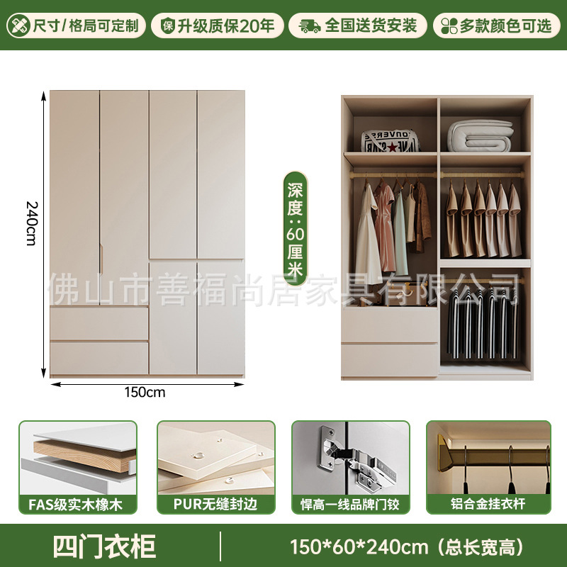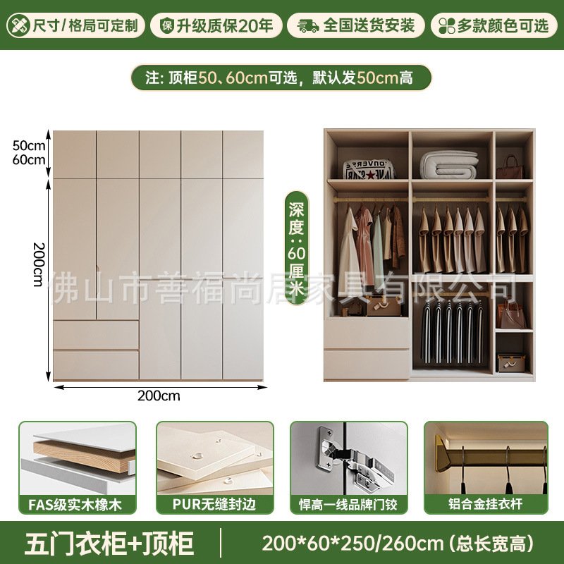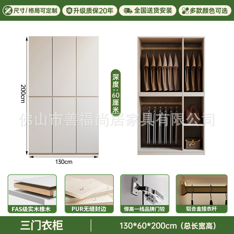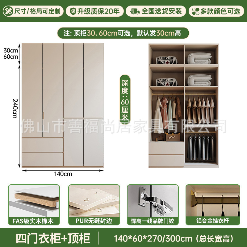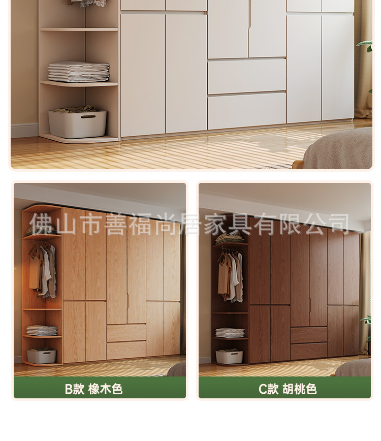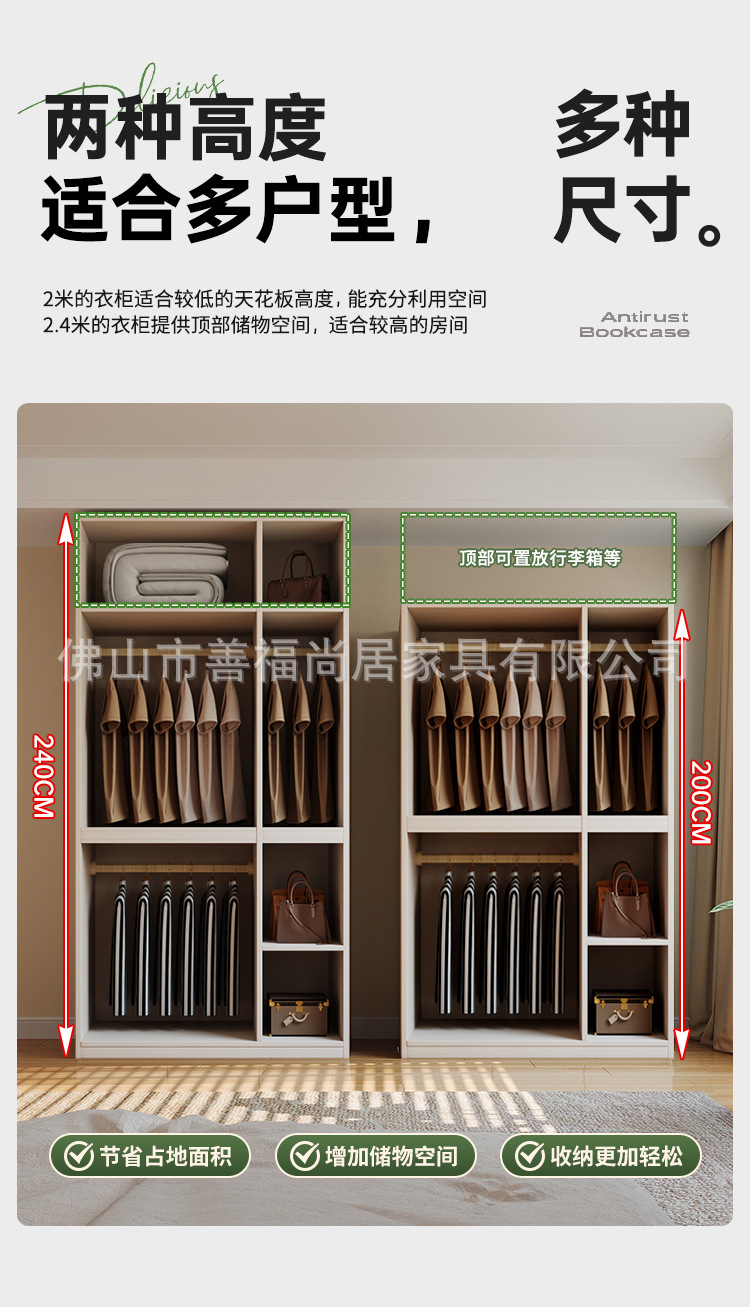 분할형 완제품 옷장 가정용 침실 오크 원목 두꺼운 캐비닛 임대용 소형 아파트 수납 옷장