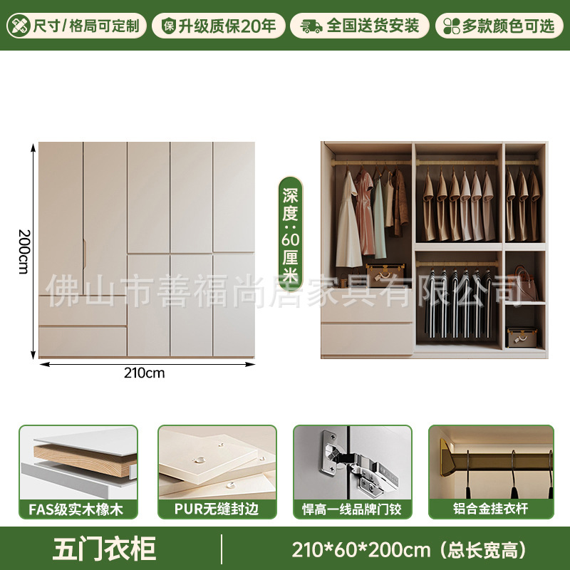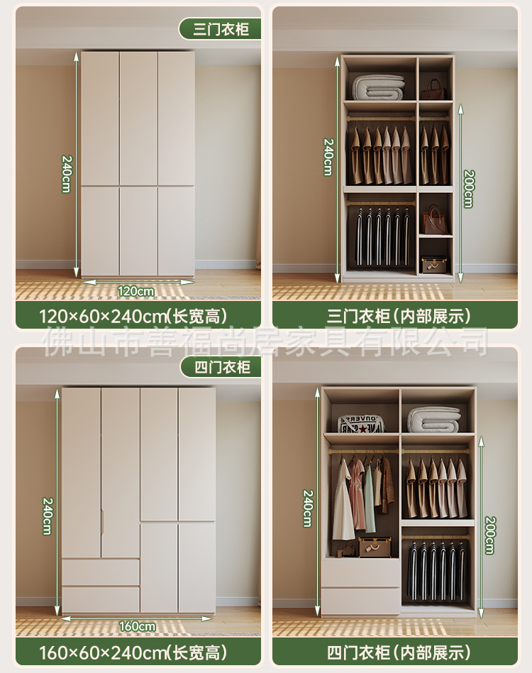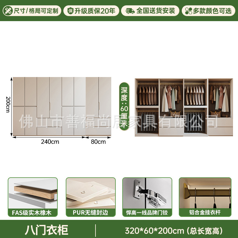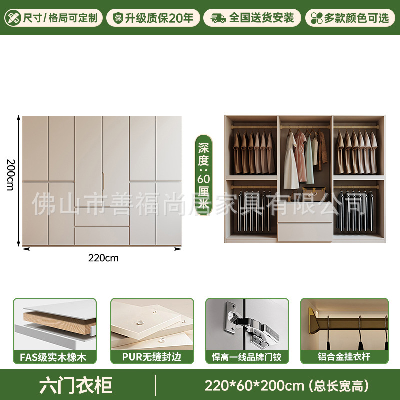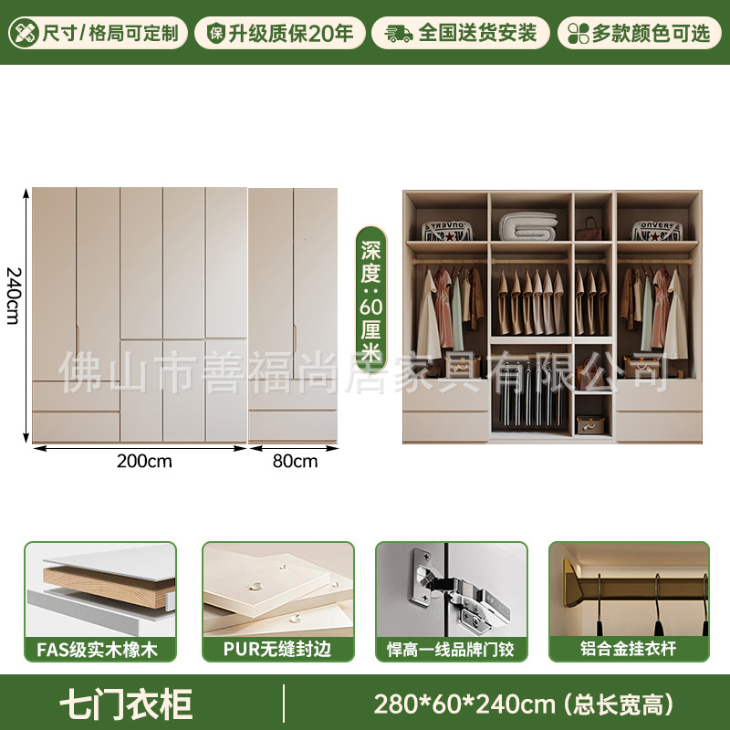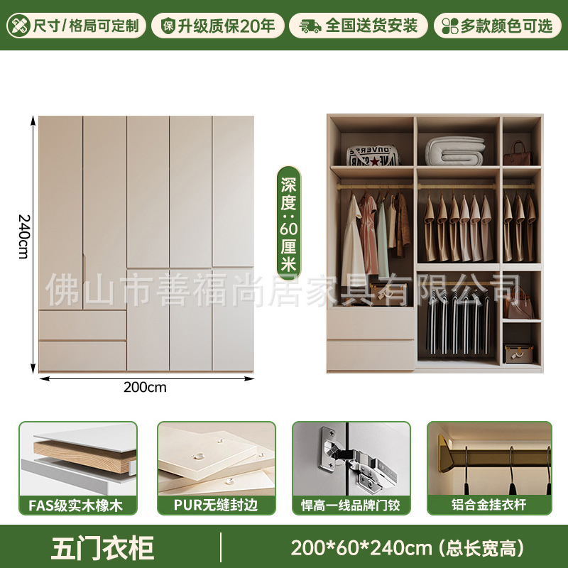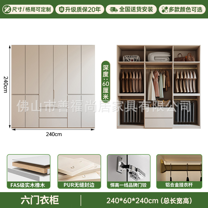 분할형 완제품 옷장 가정용 침실 오크 원목 두꺼운 캐비닛 임대용 소형 아파트 수납 옷장