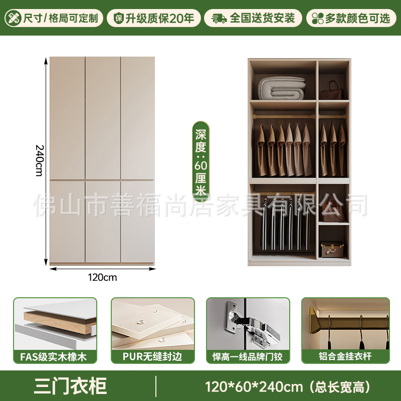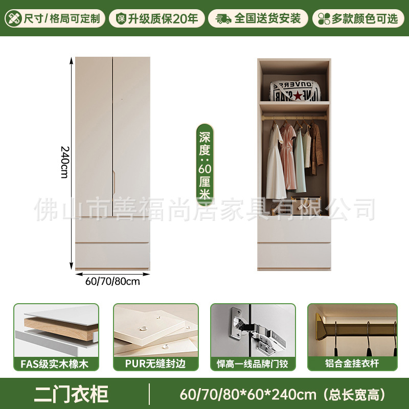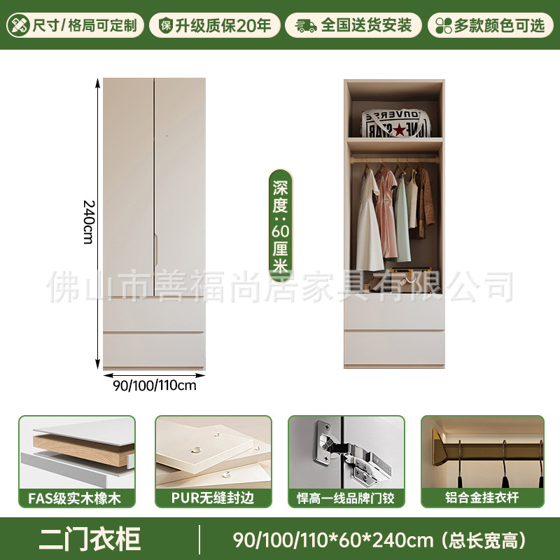분할형 완제품 옷장 가정용 침실 오크 원목 두꺼운 캐비닛 임대용 소형 아파트 수납 옷장스토어 가기