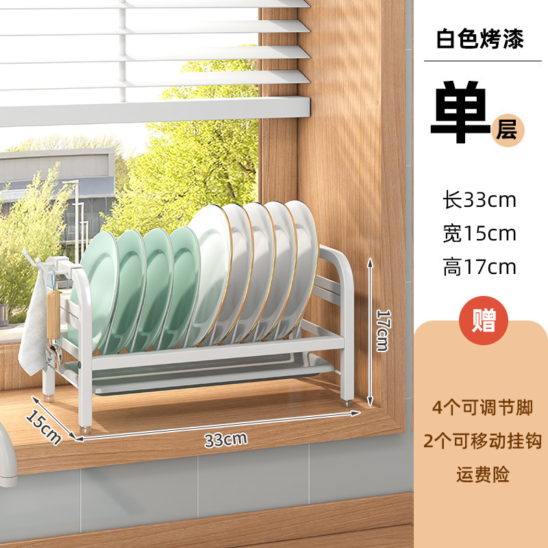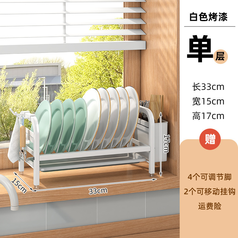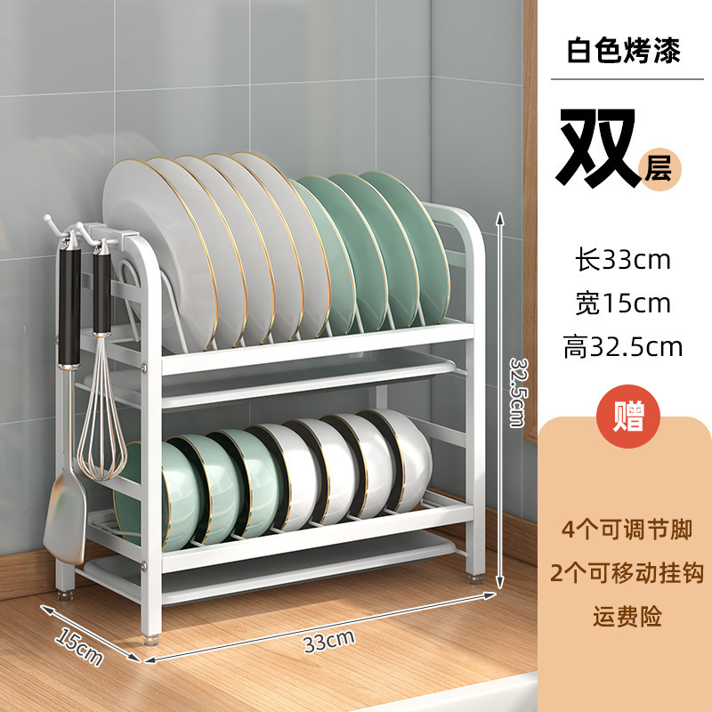 • 흰색 이중 가이드 접시 랙 + 후크 2개