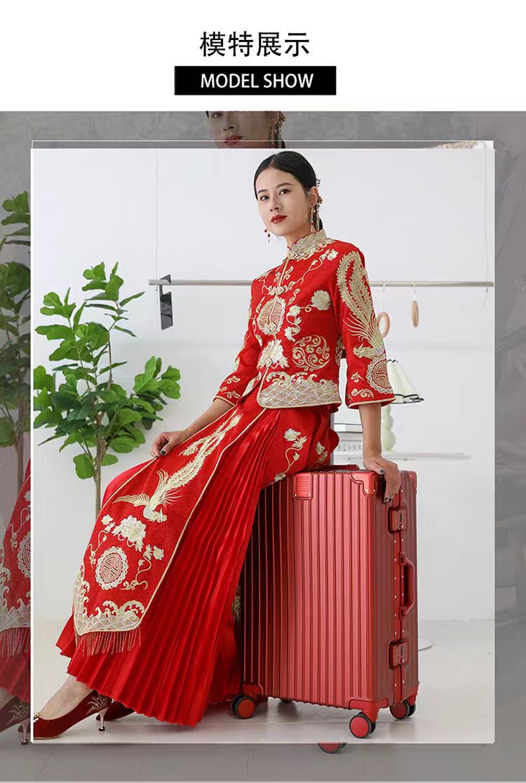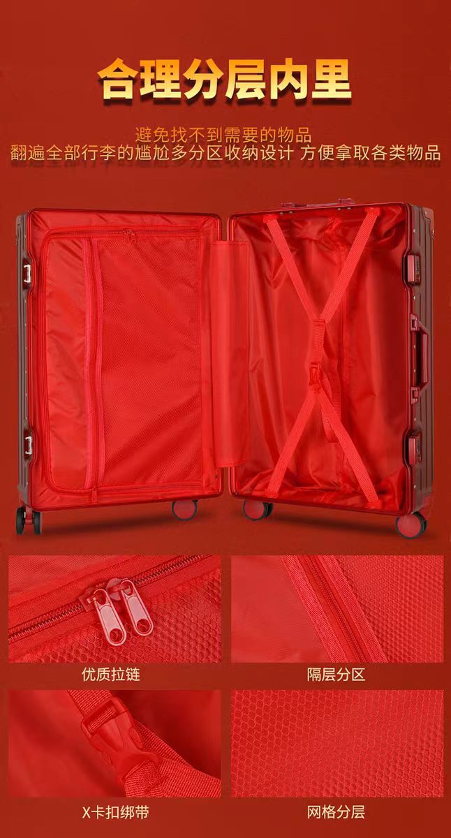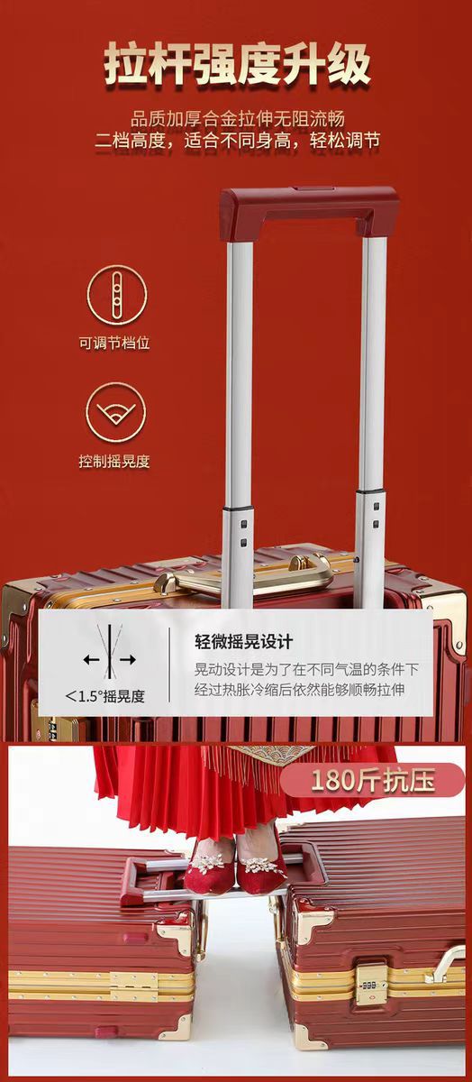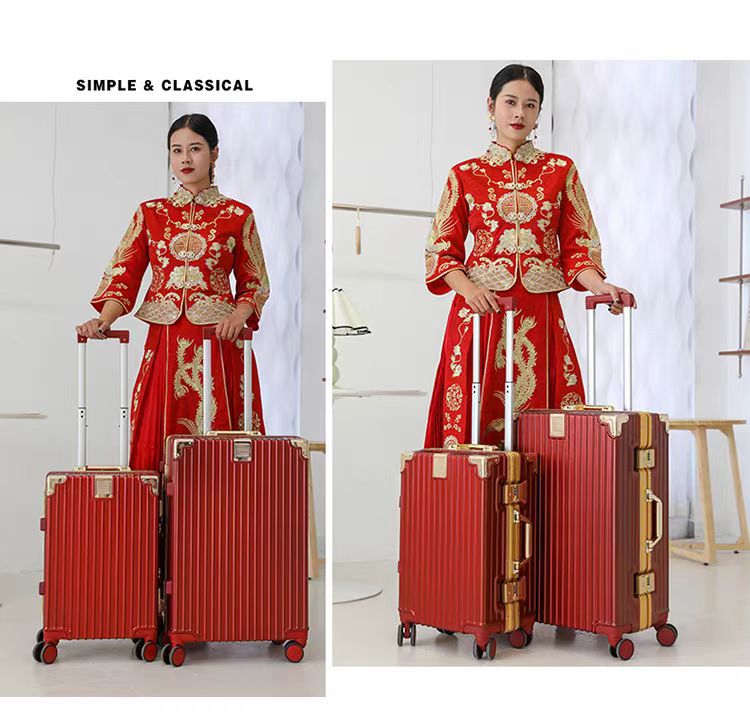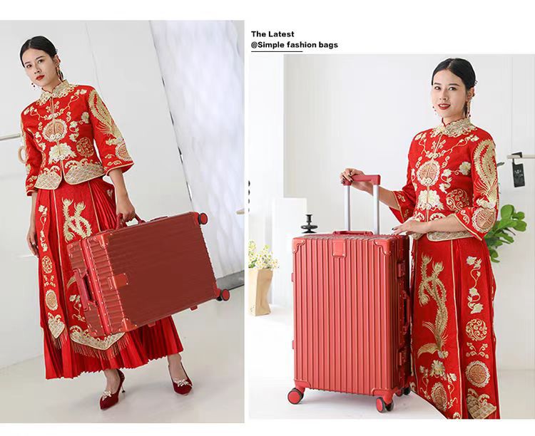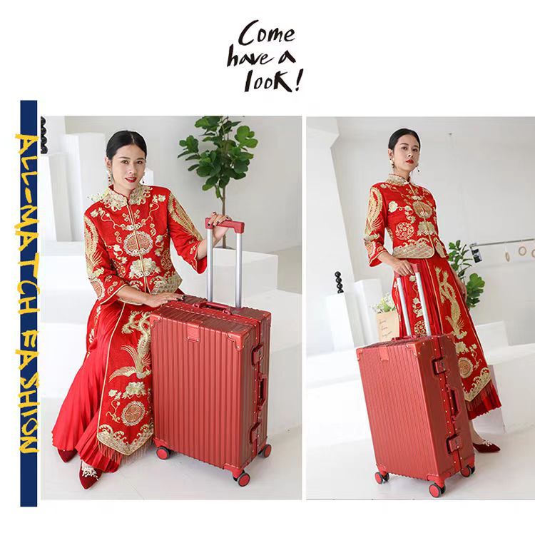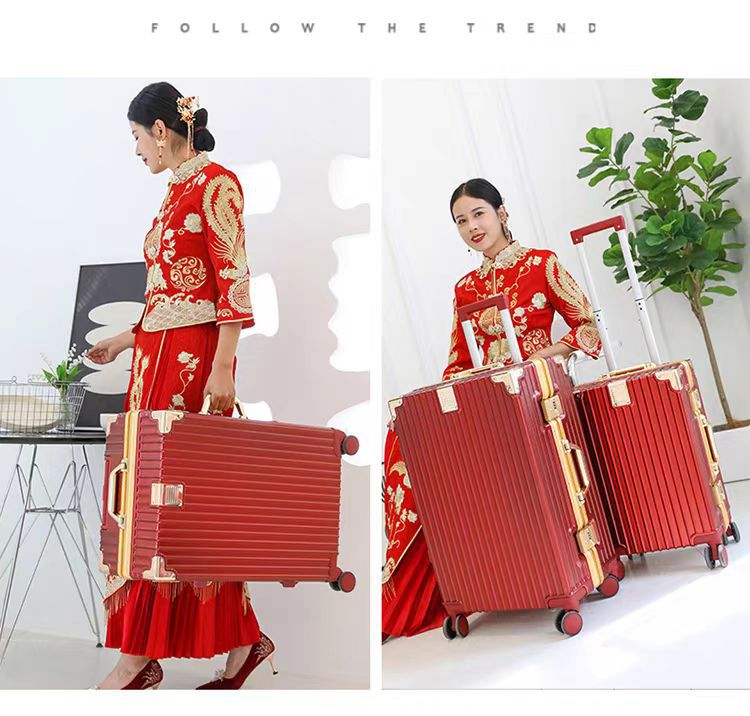 여성용 웨딩 가방 20inch 탑승 케이스 빅 레드 범용 휠 트롤리 케이스 결혼식 상자 비밀번호 가방 선물스토어 가기