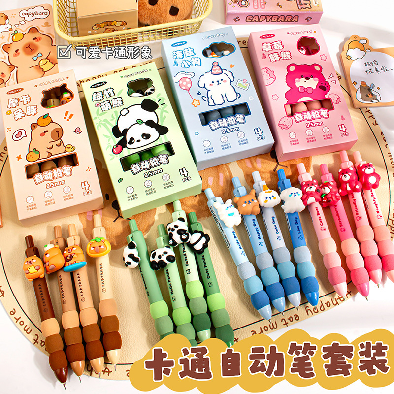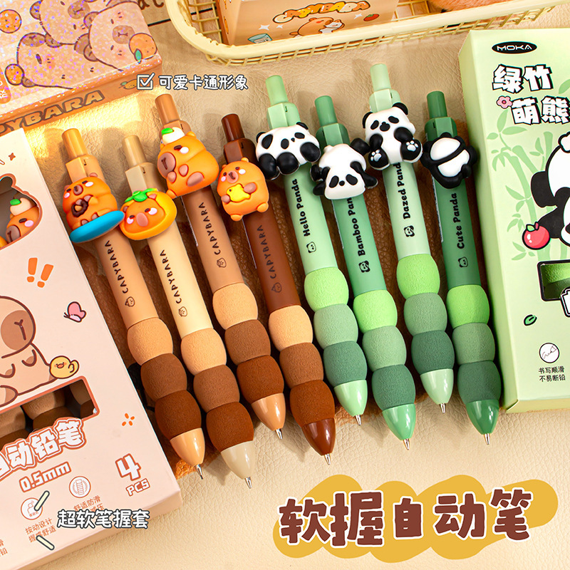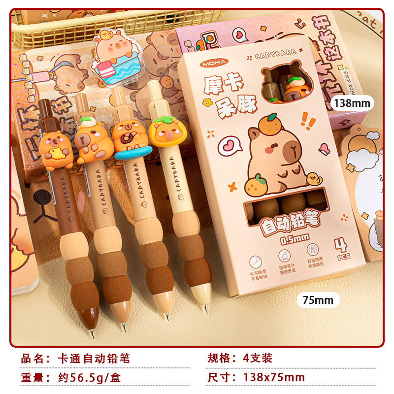 카피바라 자동연필, 4개입, 박스포장, 초등학생을 위한 연필깎이 없이 쓰기 연습, 부담을 줄여주는 소프트팩 연필