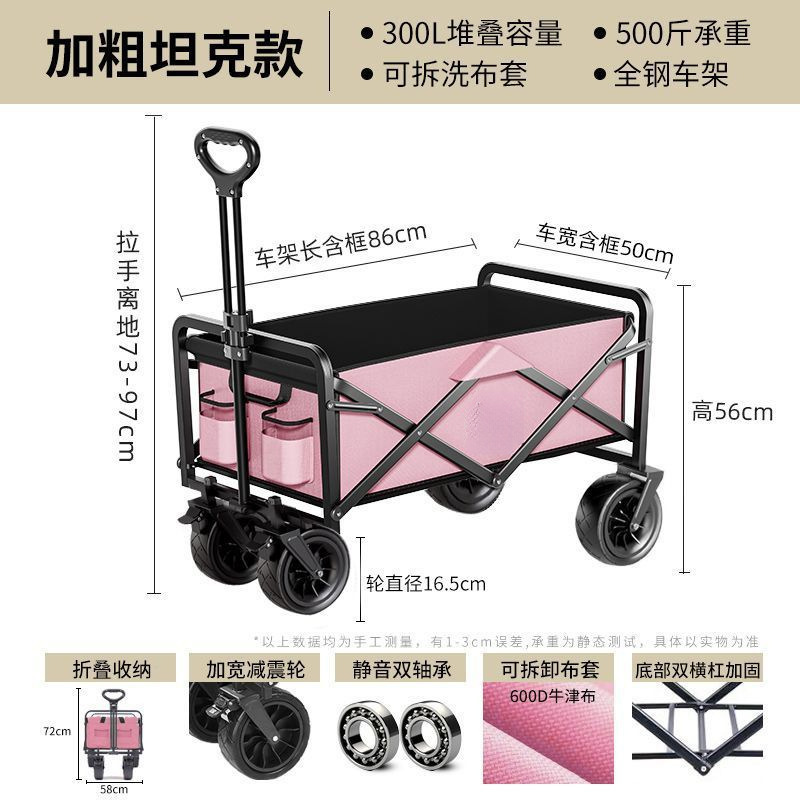 • [탱크 오프로드 모델 - 핑크와 블랙] 더블 브레이크 충격 흡수 휠 + 확대 프레임 - [1초 접이식] 두꺼운 탄소강 프레임, 탈착식 천 커버, 내하중 550