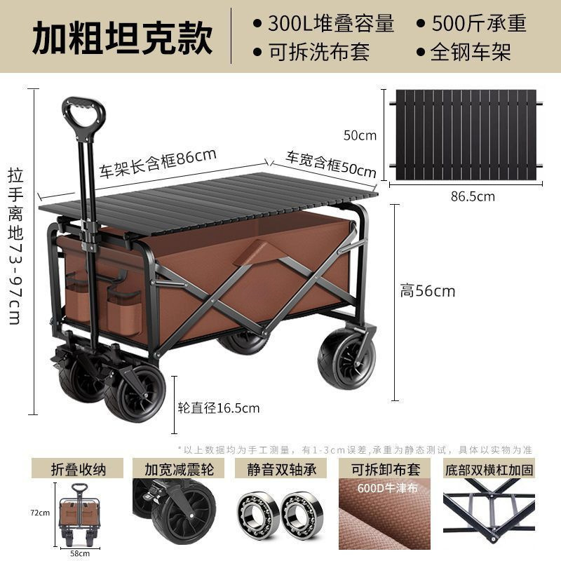 • [탱크 오프로드 모델 - 커피색] 더블 브레이크 충격 흡수 휠 + 확대 프레임 - [1초 접이식] 두꺼운 탄소강 프레임, 탈착식 천 커버, 내하중 550