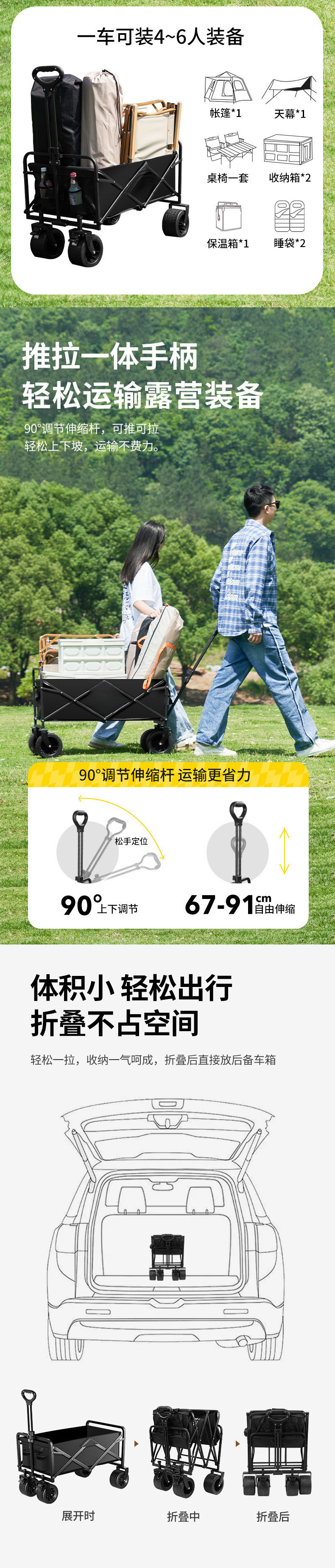 캠핑카 야외 접이식 카트 초대형 캠핑카 피크닉 카트 트레일러 캠핑 핸드 트롤리 트롤리스토어 가기