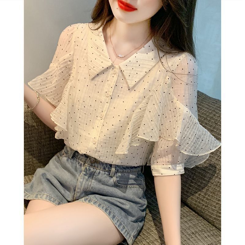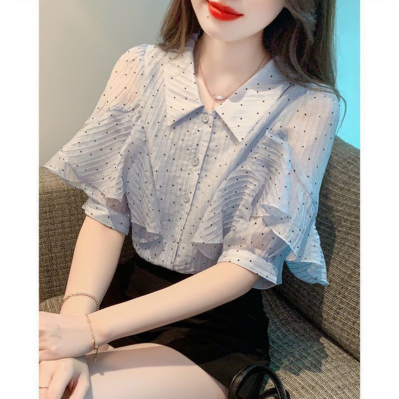 패셔너블한 반팔 쉬폰 셔츠 여성 여름복 2025 여름 신작 디자인 서양식 셔츠 슬리밍 탑스토어 가기