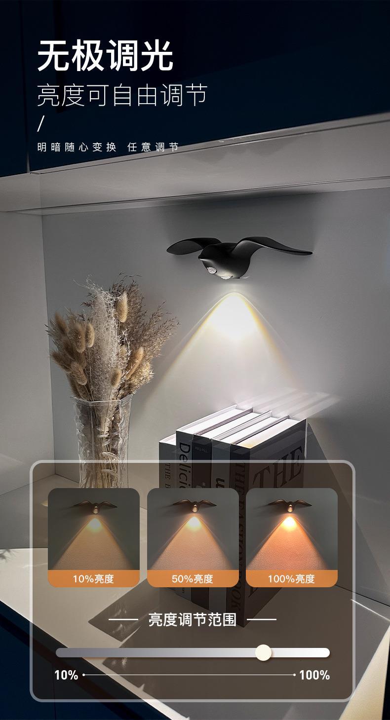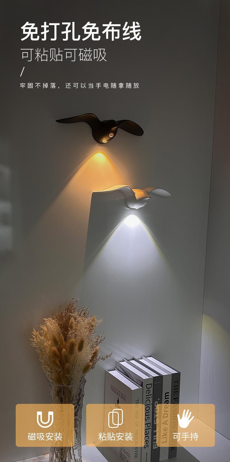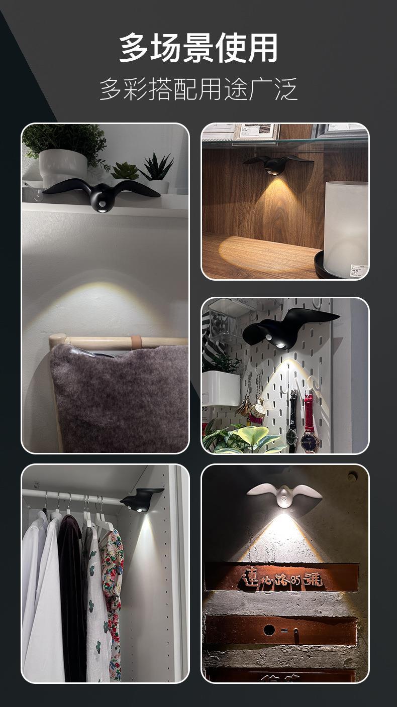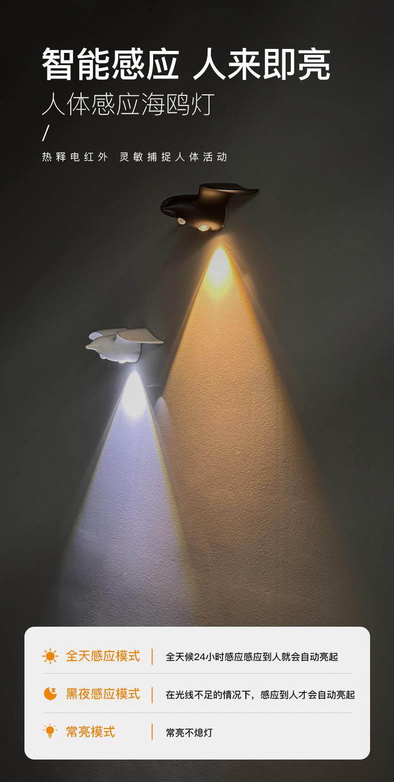 새로운 갈매기 인체 센서 램프 통로 계단 입구 충전식 LED 야간 조명 야외 실내 장식 벽 램프