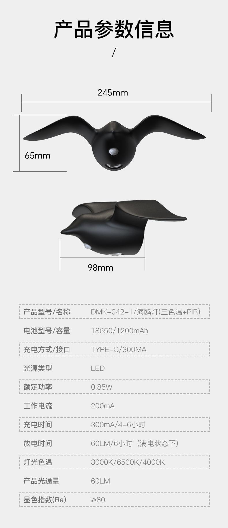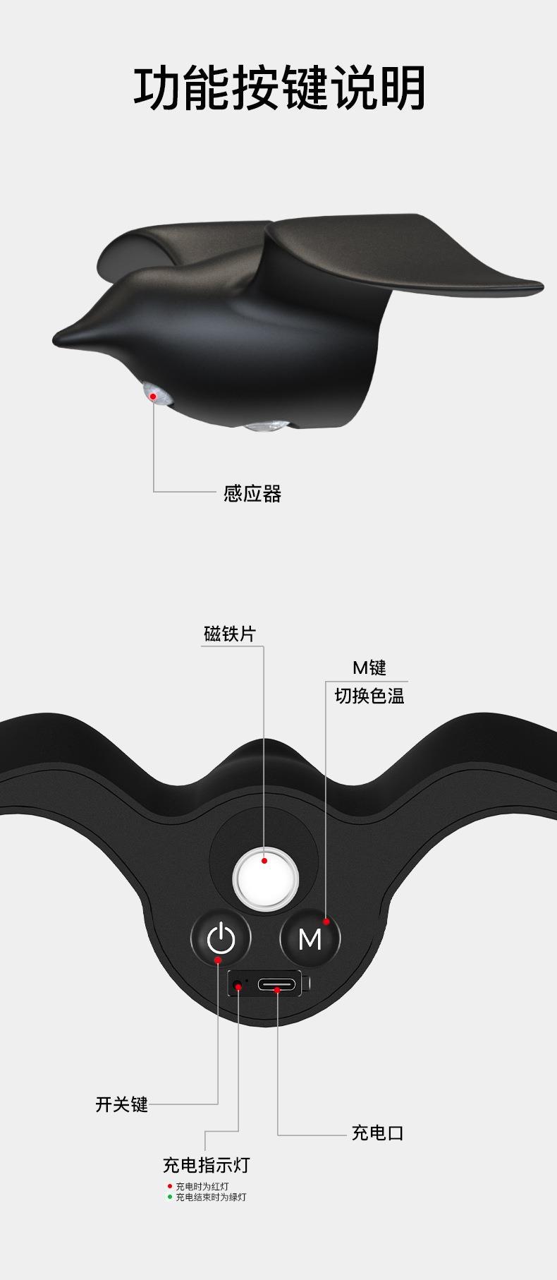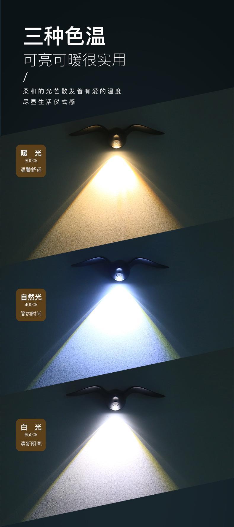 새로운 갈매기 인체 센서 램프 통로 계단 입구 충전식 LED 야간 조명 야외 실내 장식 벽 램프