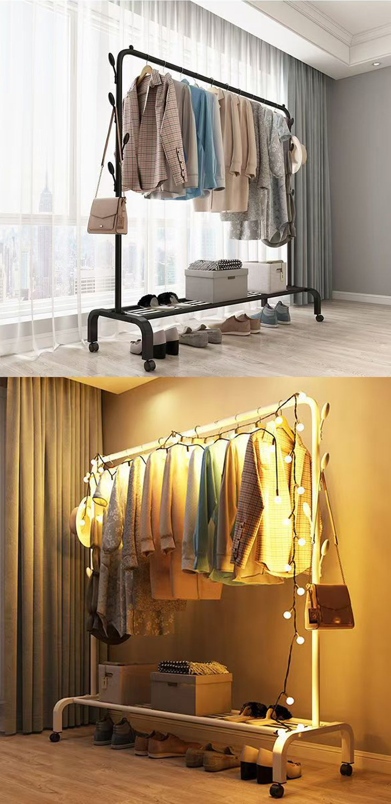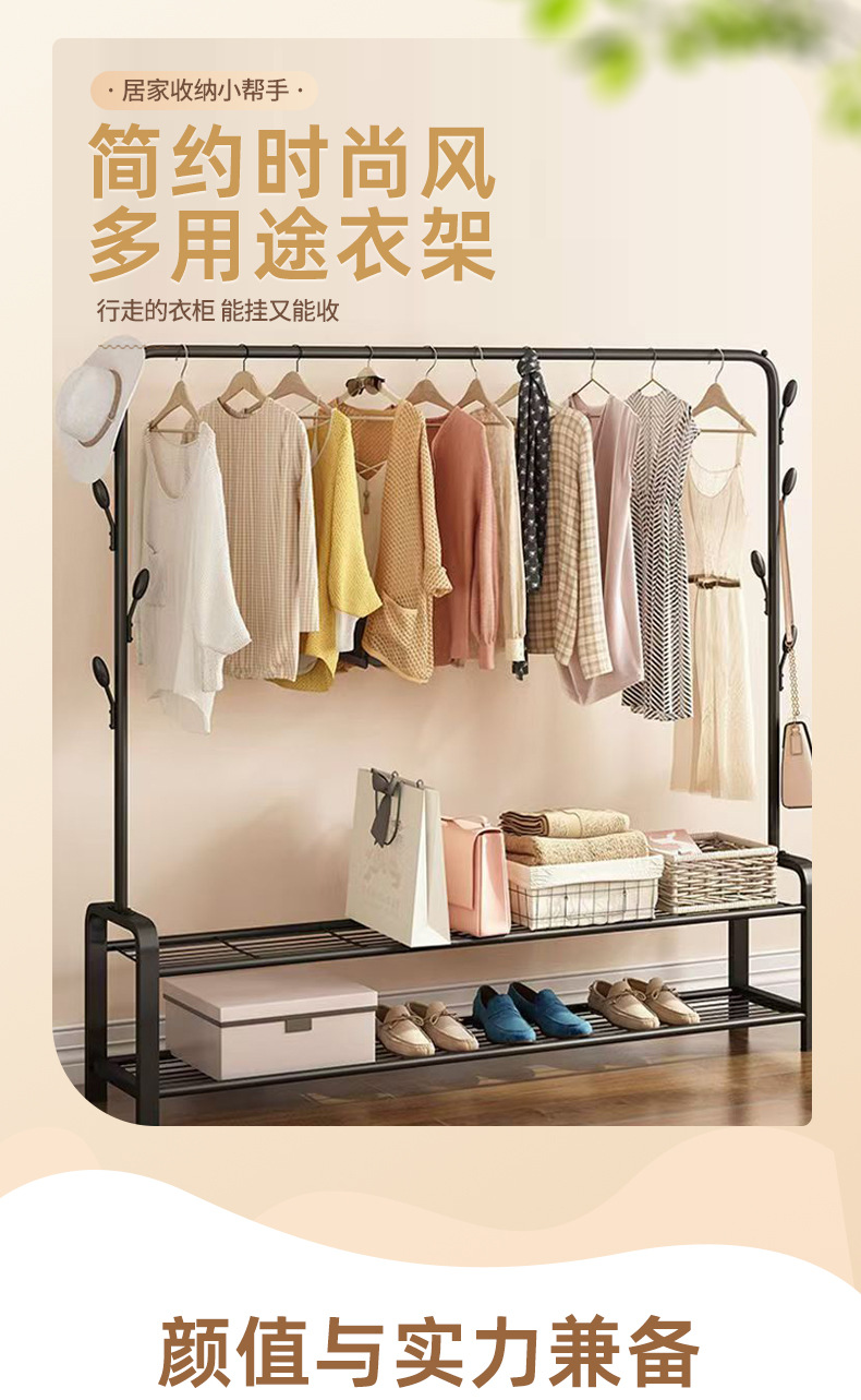 도매 발코니 옷걸이 랙 홈 침실 간단한 바닥 옷걸이 이동식 기숙사 신발 가방 보관 옷걸이스토어 가기