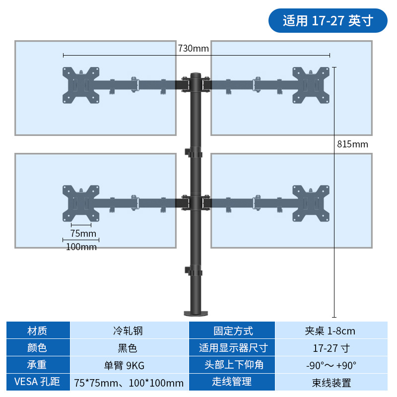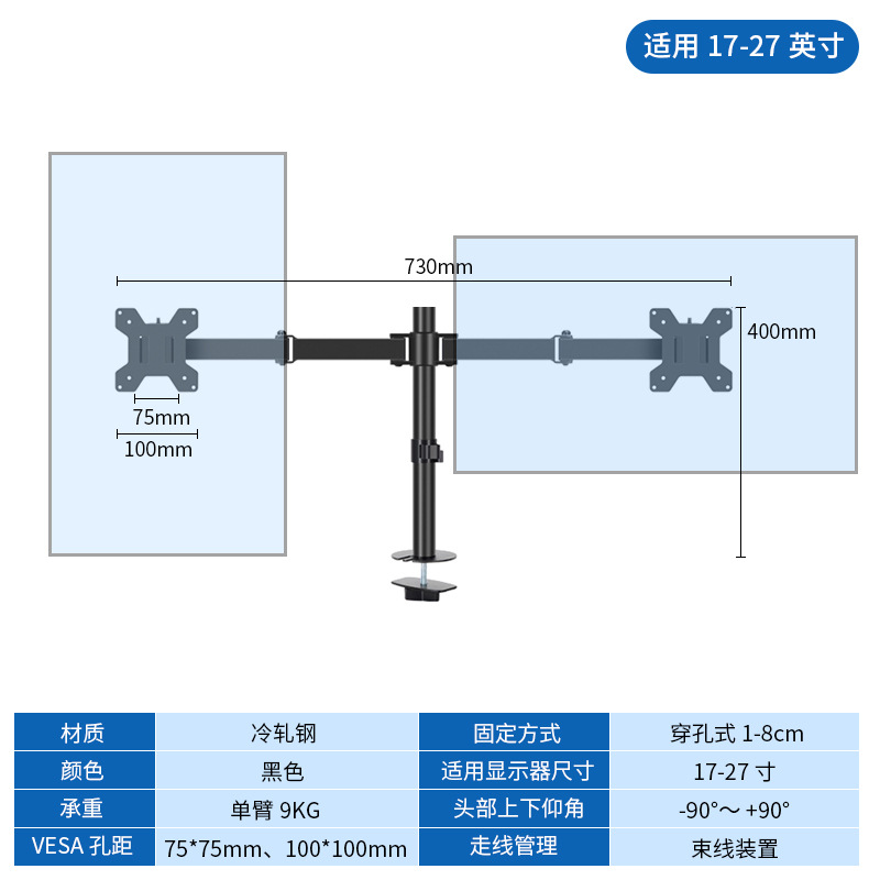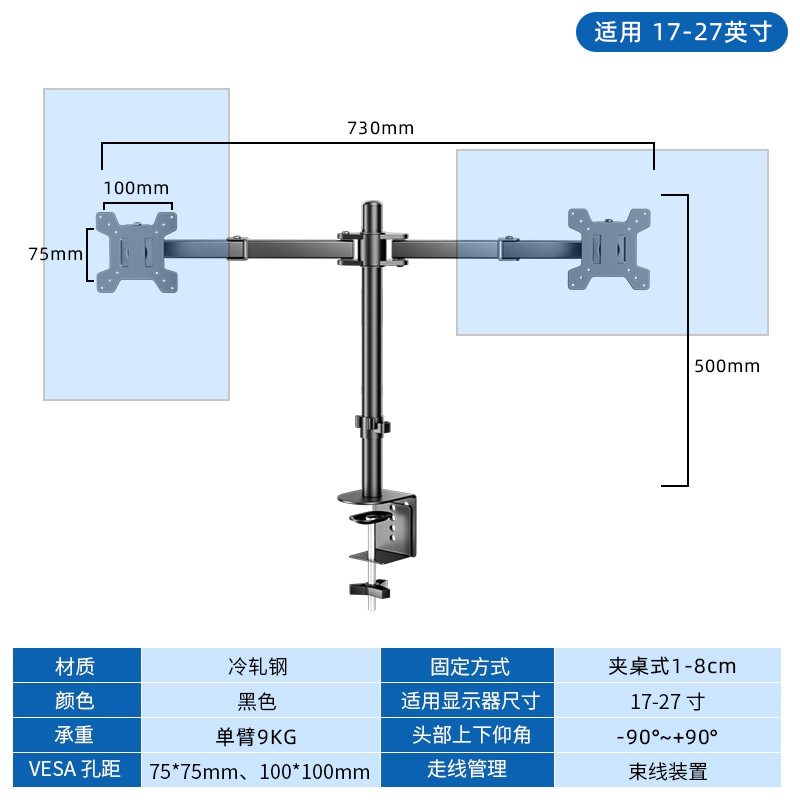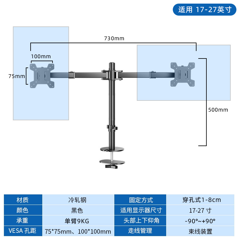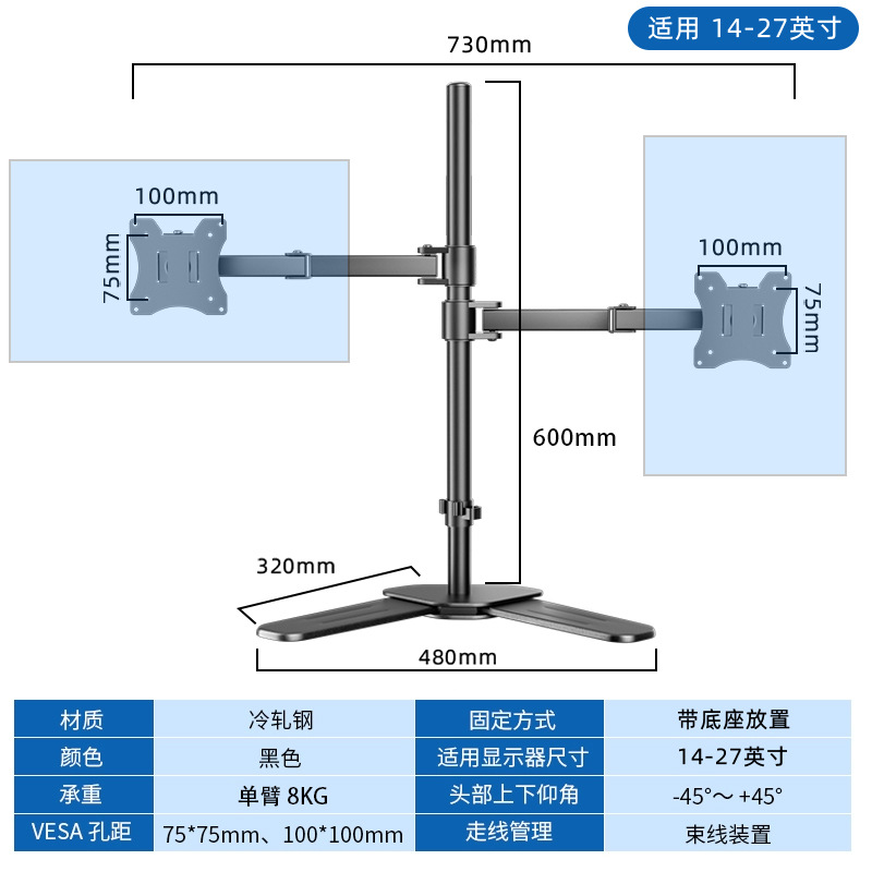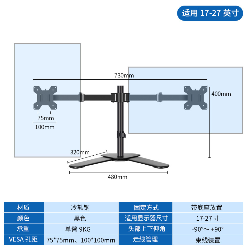 • 좌우 듀얼 스크린 업그레이드 버전( 17-27inch ) 내하중 9KG 베이스 모델