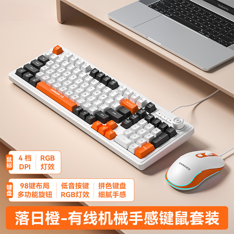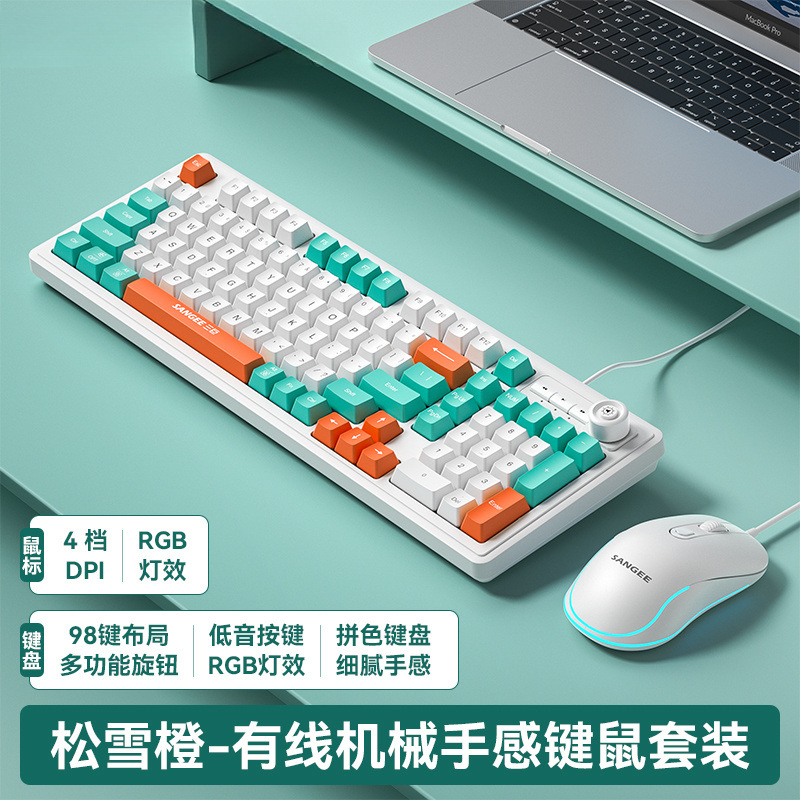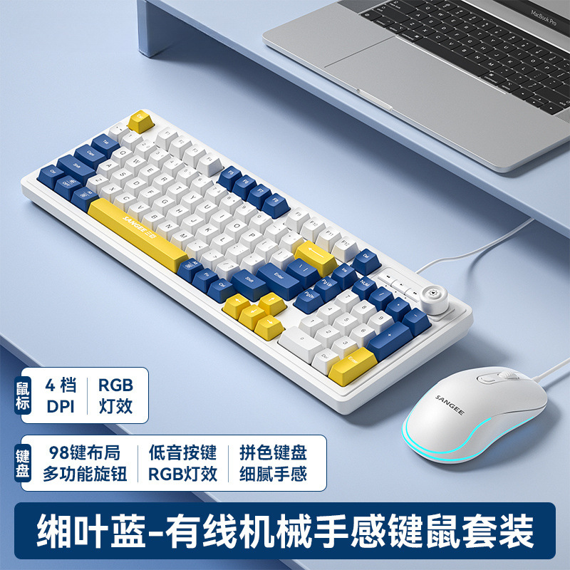 유선 기계식 키보드 및 마우스 세트, 저음 e-스포츠 게임용 키보드 및 마우스, 사무용 컴퓨터, 공장 직접 판매