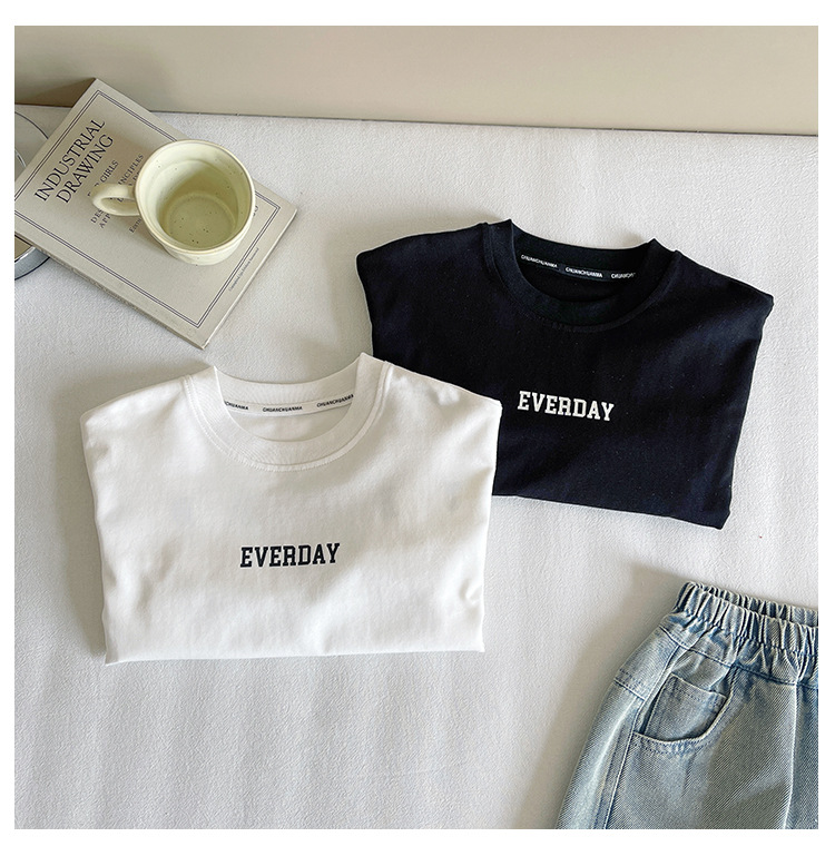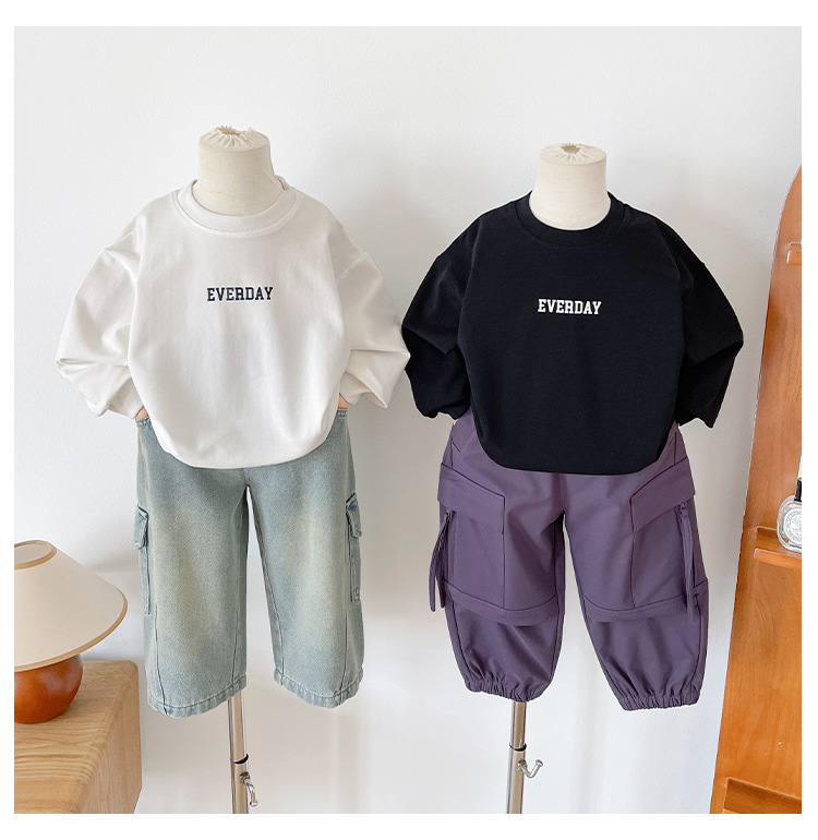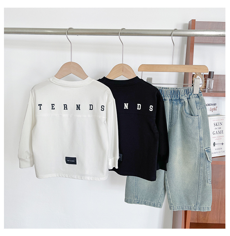 바람의 계곡 2025 가을 신작 아동복 아동 한국어 버전 소년 소녀용 다용도 문자 티셔츠, 멋진 루즈한 바닥스토어 가기