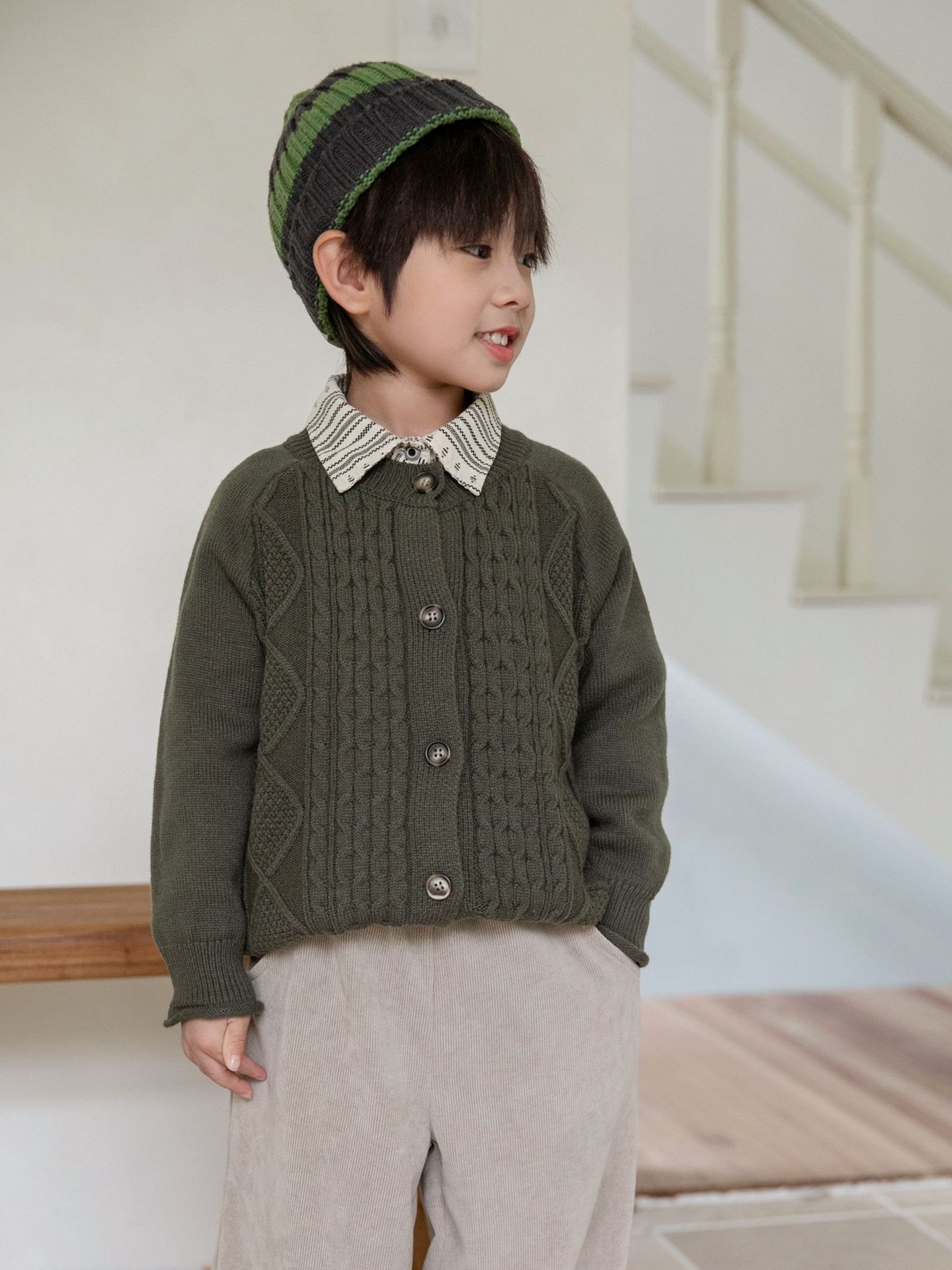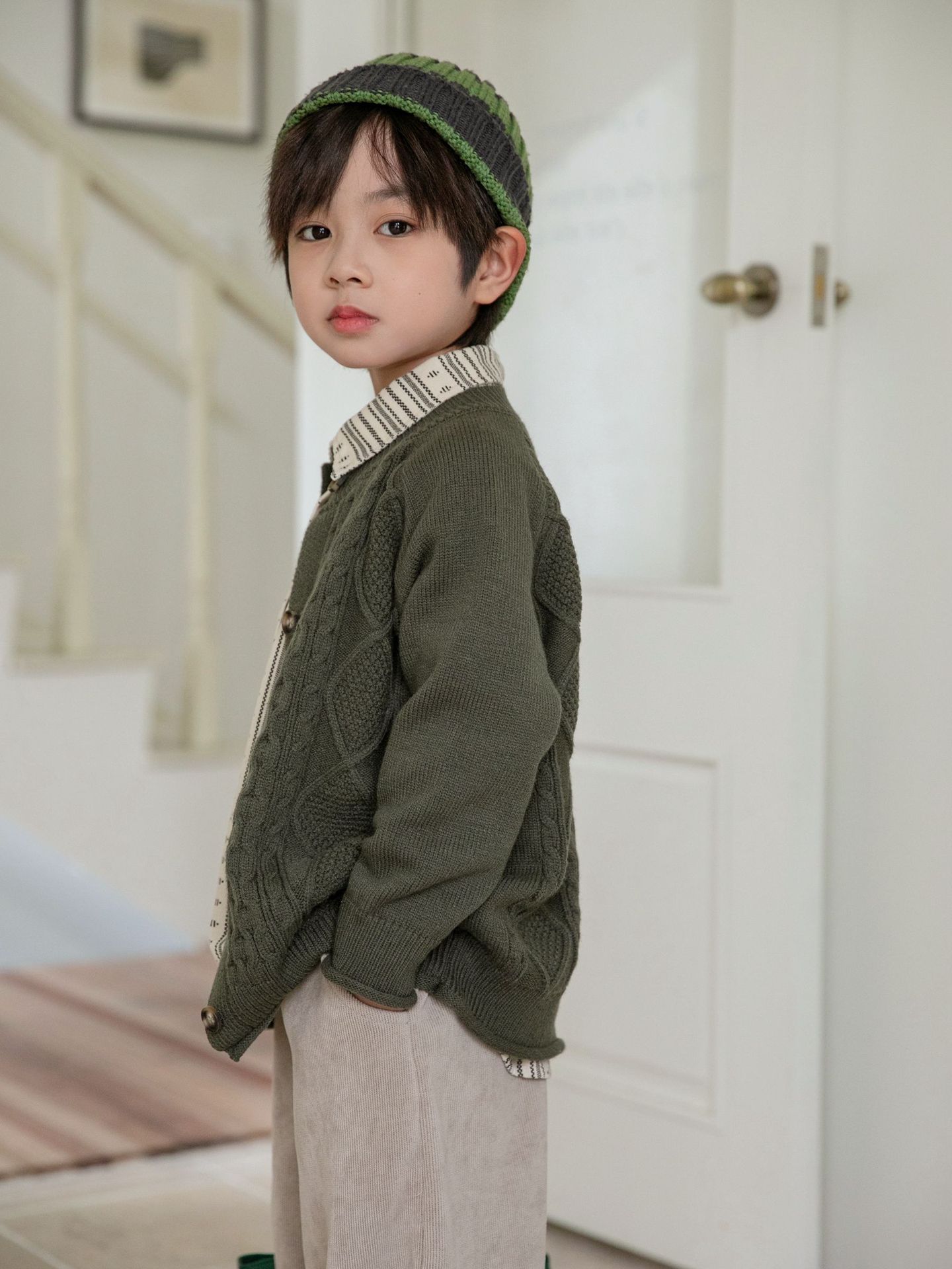 소년 스웨터 카디건 2025 마름모 케이블 두꺼운 스웨터 재킷 가을 겨울 새로운 스타일 한국 스타일 탑스토어 가기