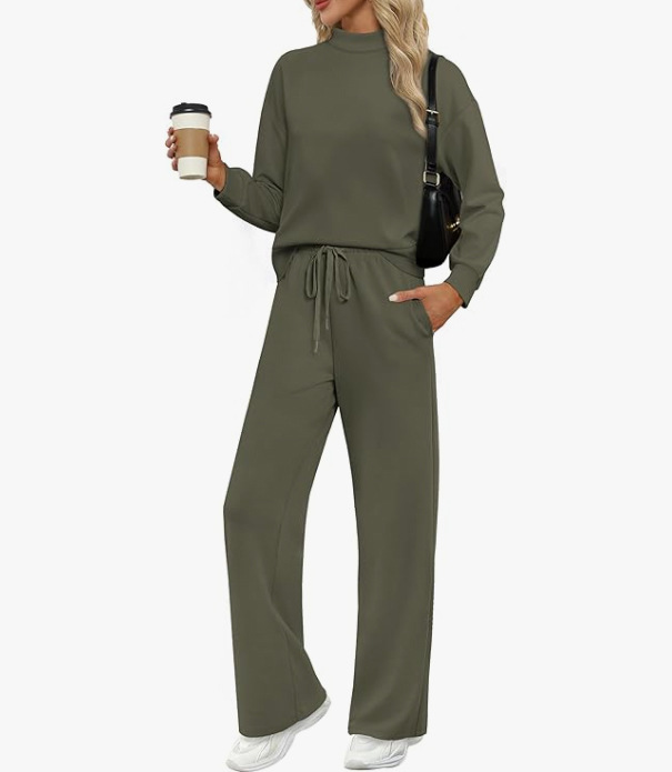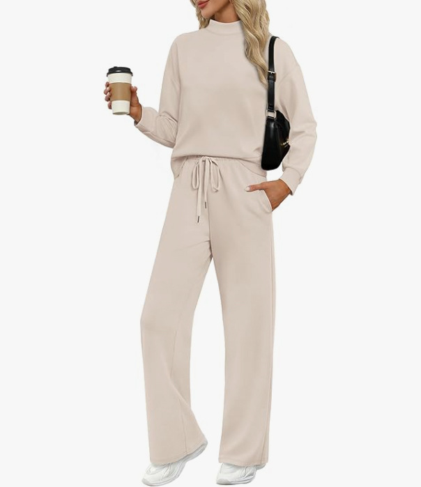 국경 간 유럽과 미국 2025 Amazon 가을 스포츠 및 레저 정장 풀오버 긴팔 스웨트 셔츠 와이드 레그 팬츠 여성용 투피스 세트스토어 가기