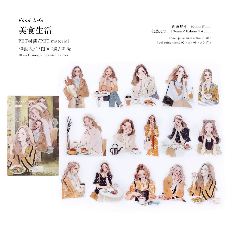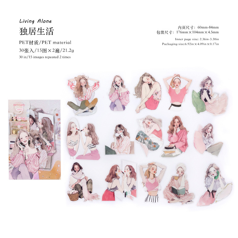 모모 도시 여성 생활 일러스트 시리즈 스티커 팩 30개 소녀 수첩 DIY [국경 간 장기 모델]