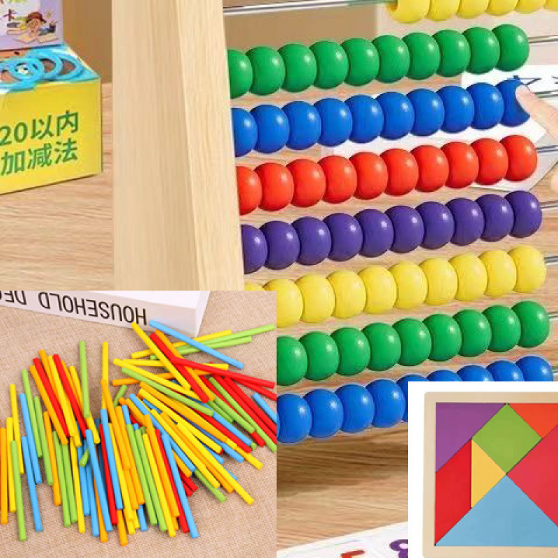 • 원목 5단 수학계산대 + 카운팅스틱 + 칠교놀이