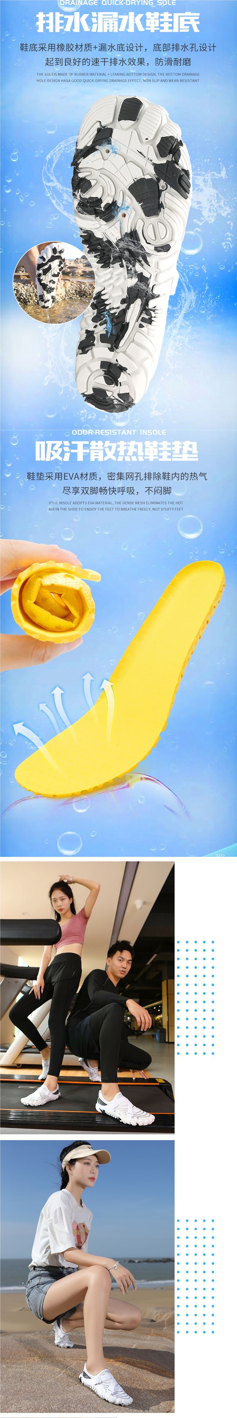 남성과 여성을 위한 두꺼운 밑창의 리버 트레이싱 슈즈, 해변 수영 및 해변 슈즈, 속건성 야외 하이킹 및 웨이딩, 미끄럼 방지 실내 피트니스