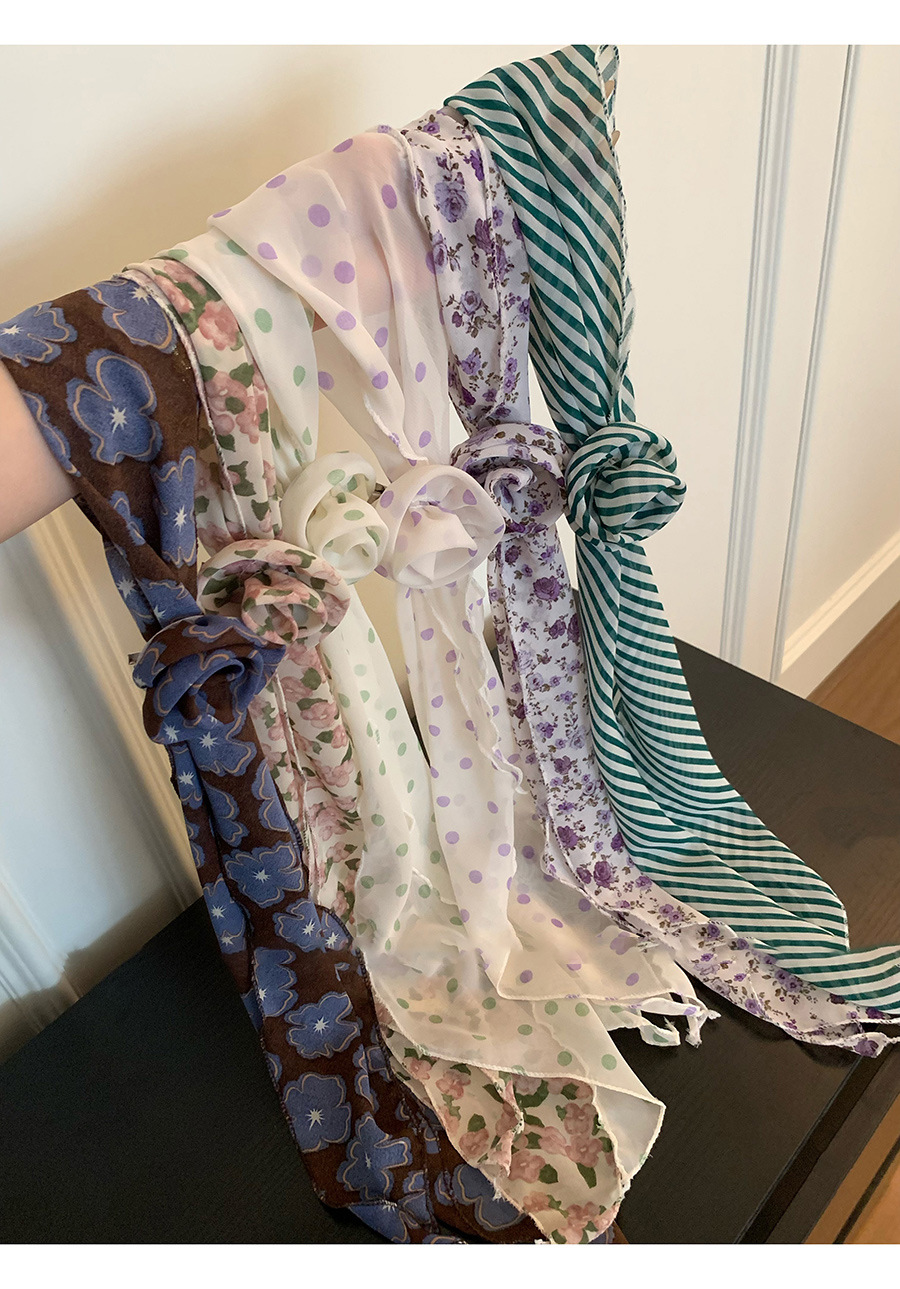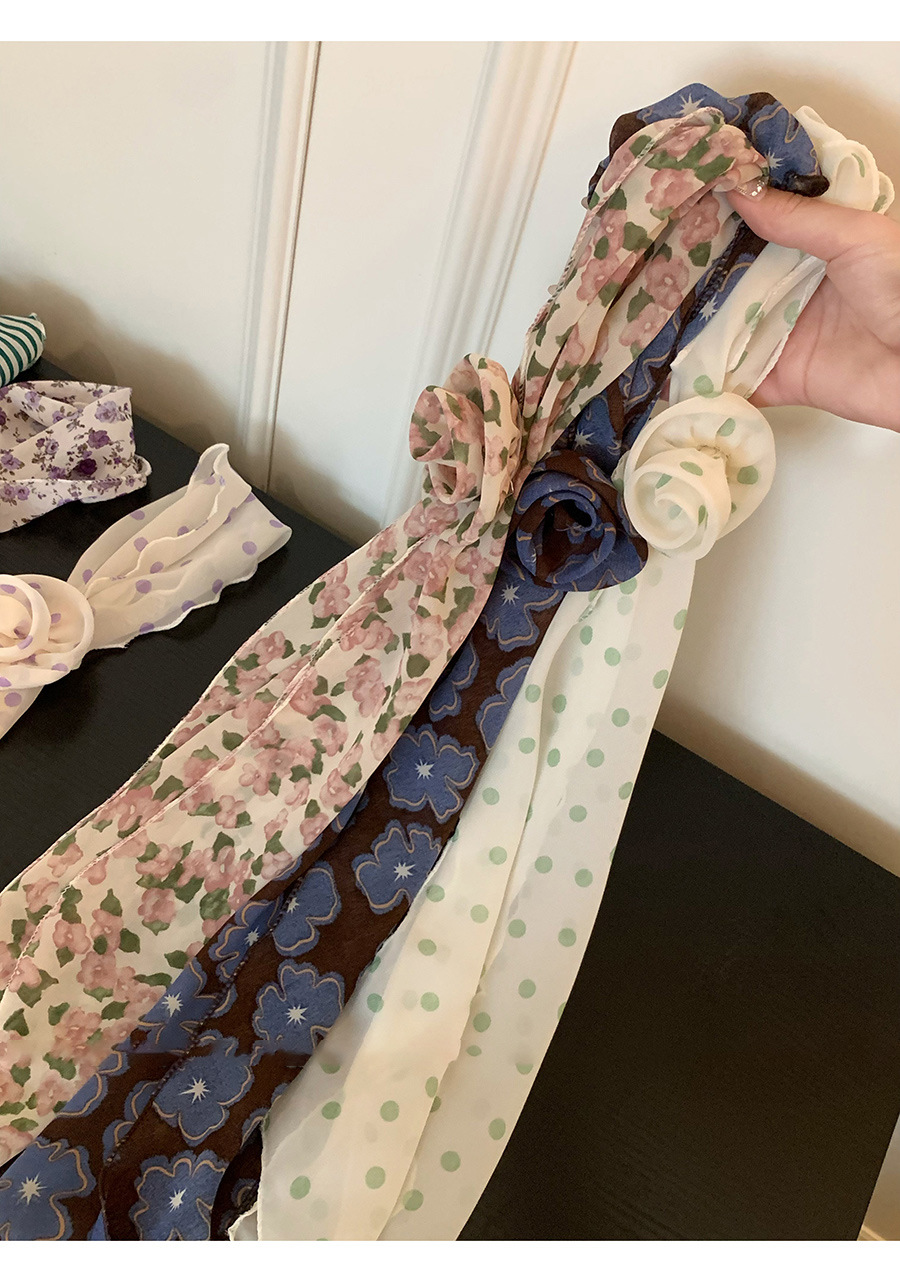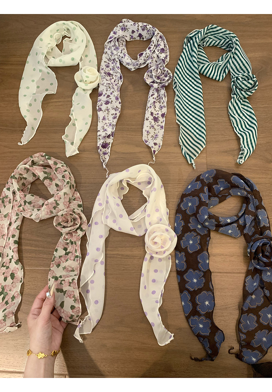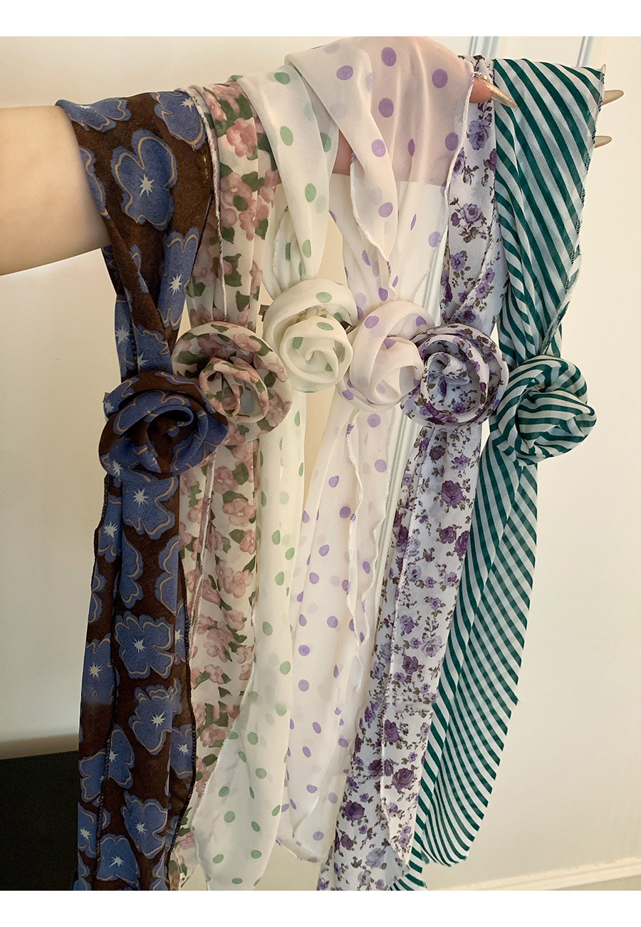 여성을위한 꽃 긴 실크 스카프 2025 새로운 여름 분위기 다목적 얇은 넥 스카프 라이트 럭셔리 리본 도매