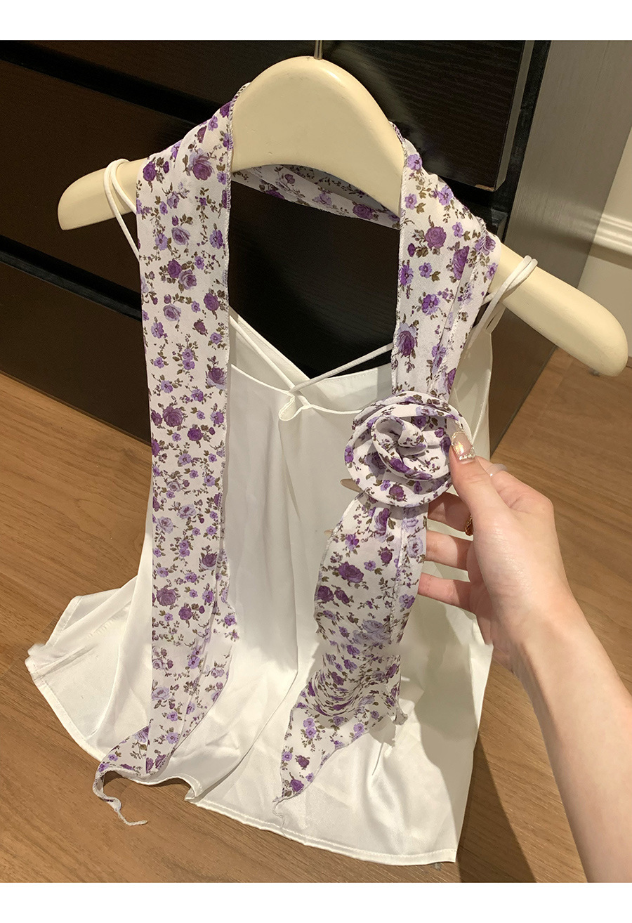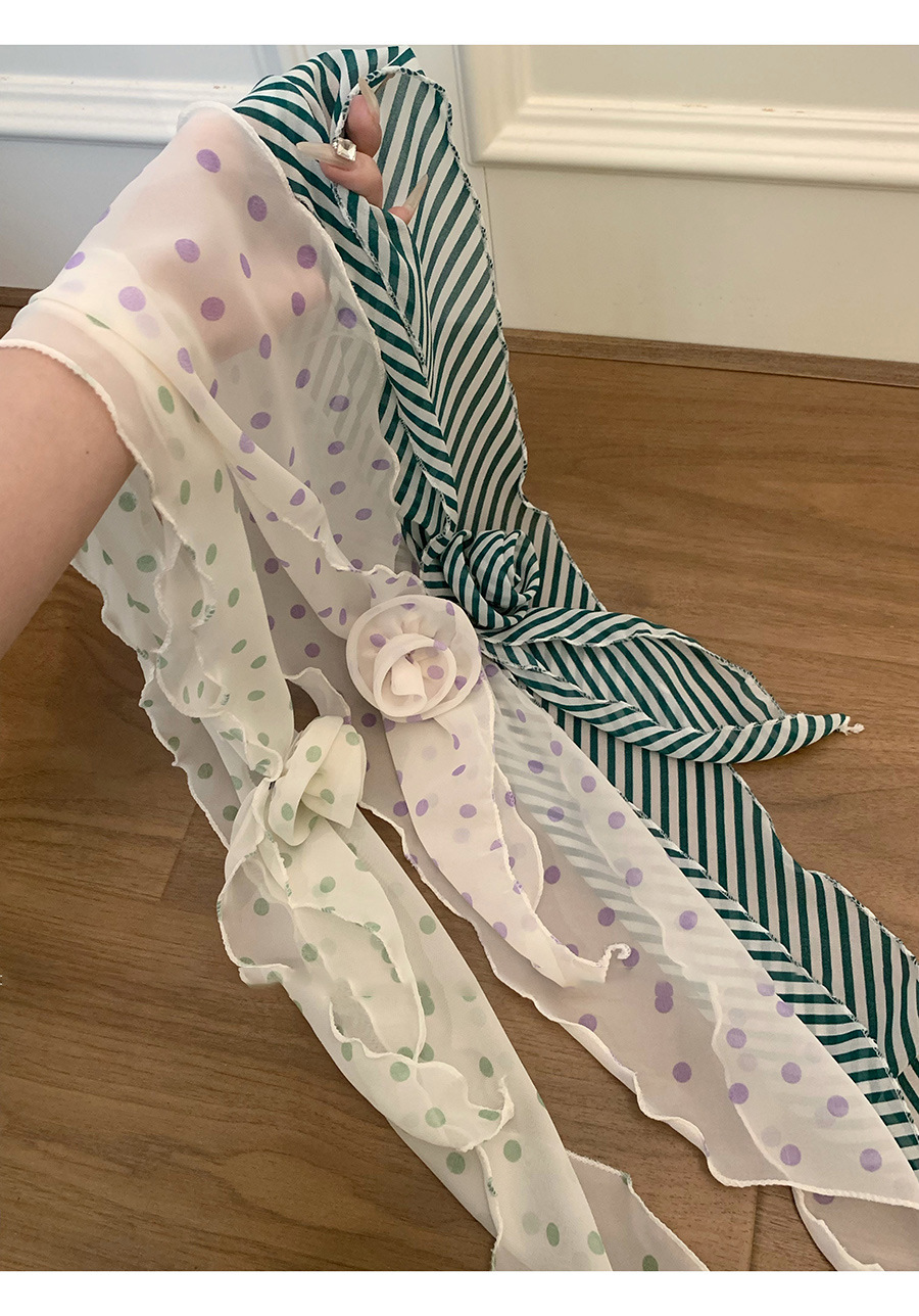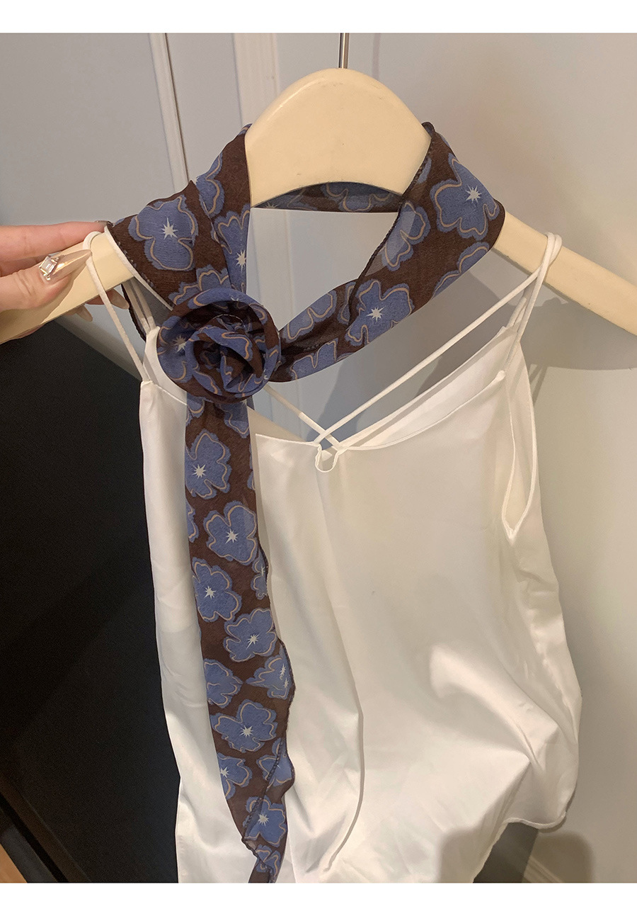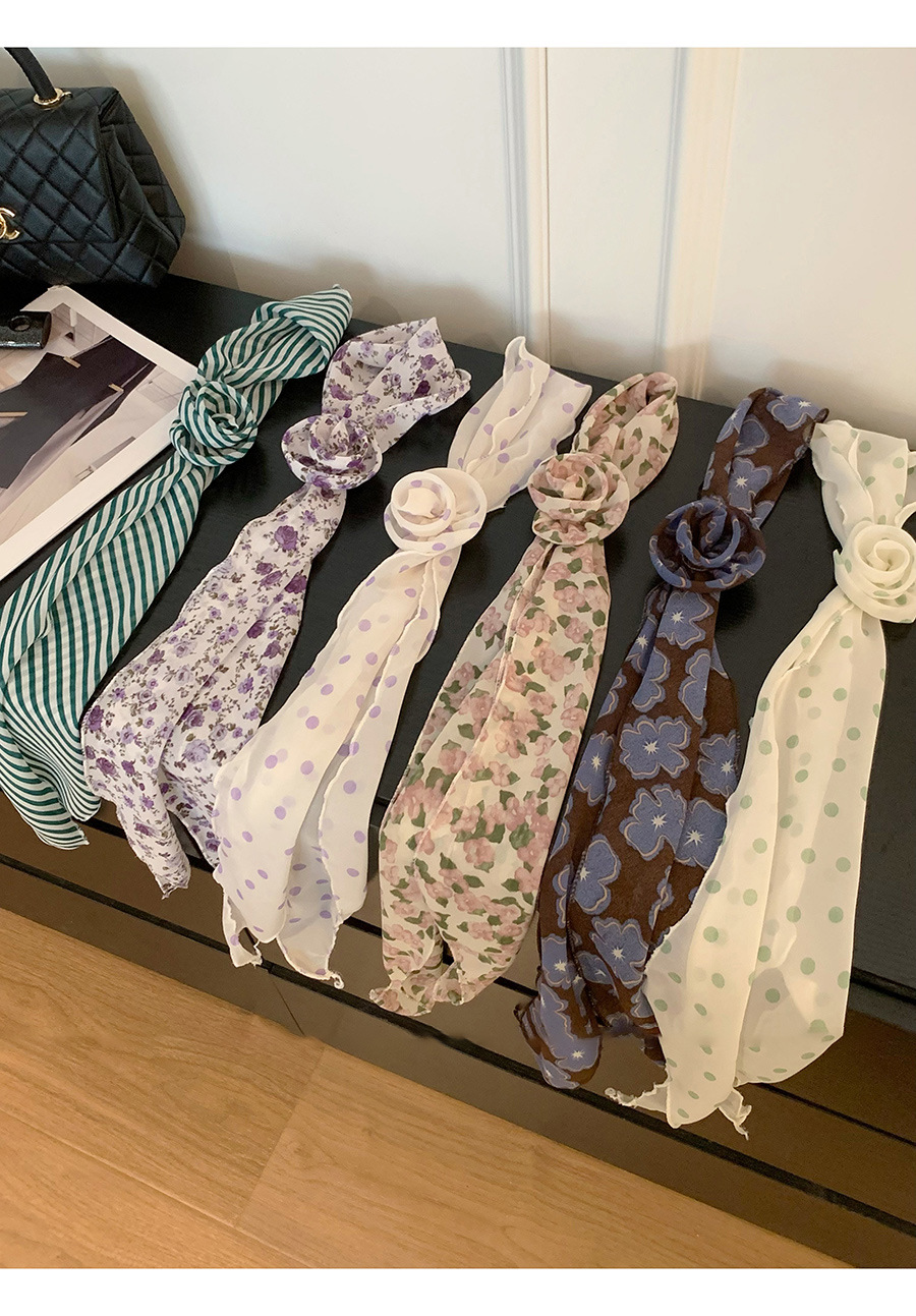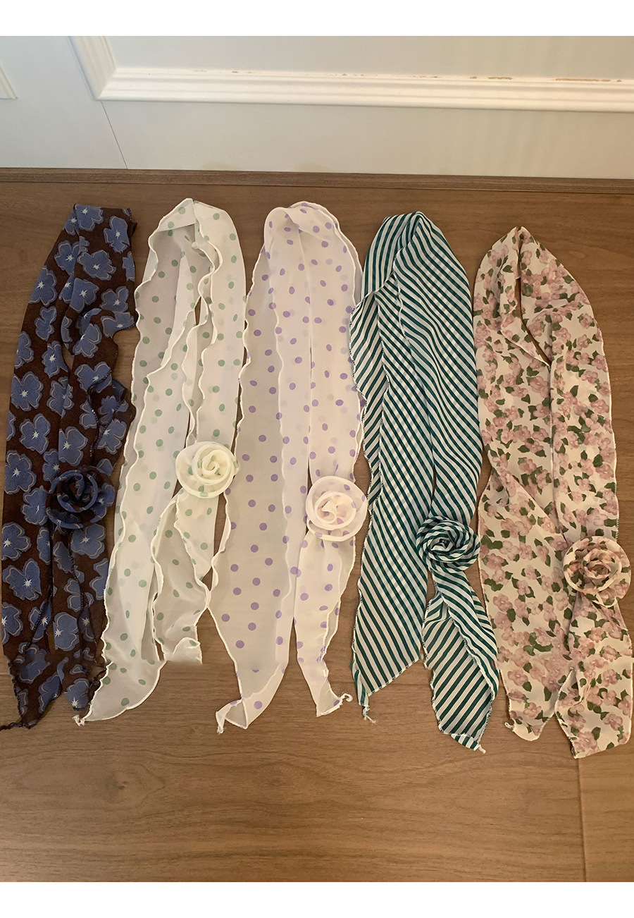 여성을위한 꽃 긴 실크 스카프 2025 새로운 여름 분위기 다목적 얇은 넥 스카프 라이트 럭셔리 리본 도매