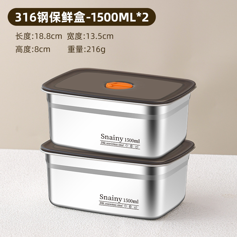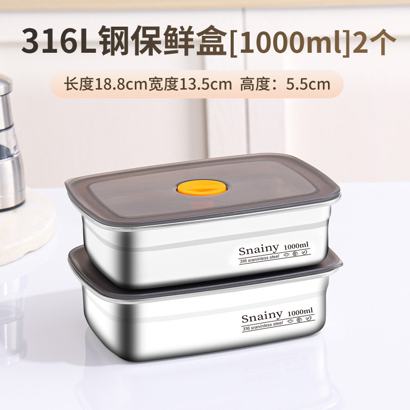 • 밀봉된 사각 상자 1000+1500ml [316L 강철] ✦ ✦
