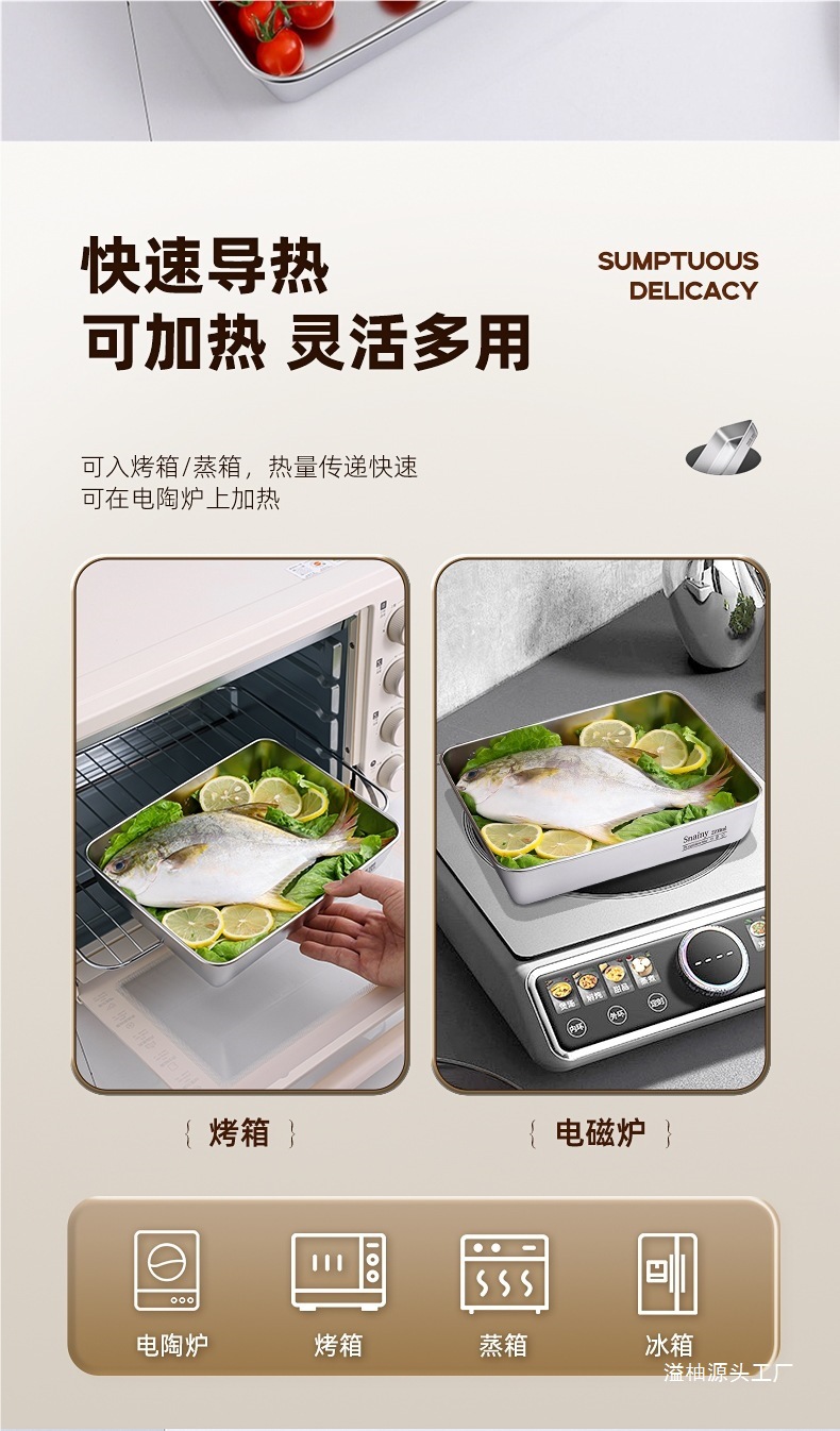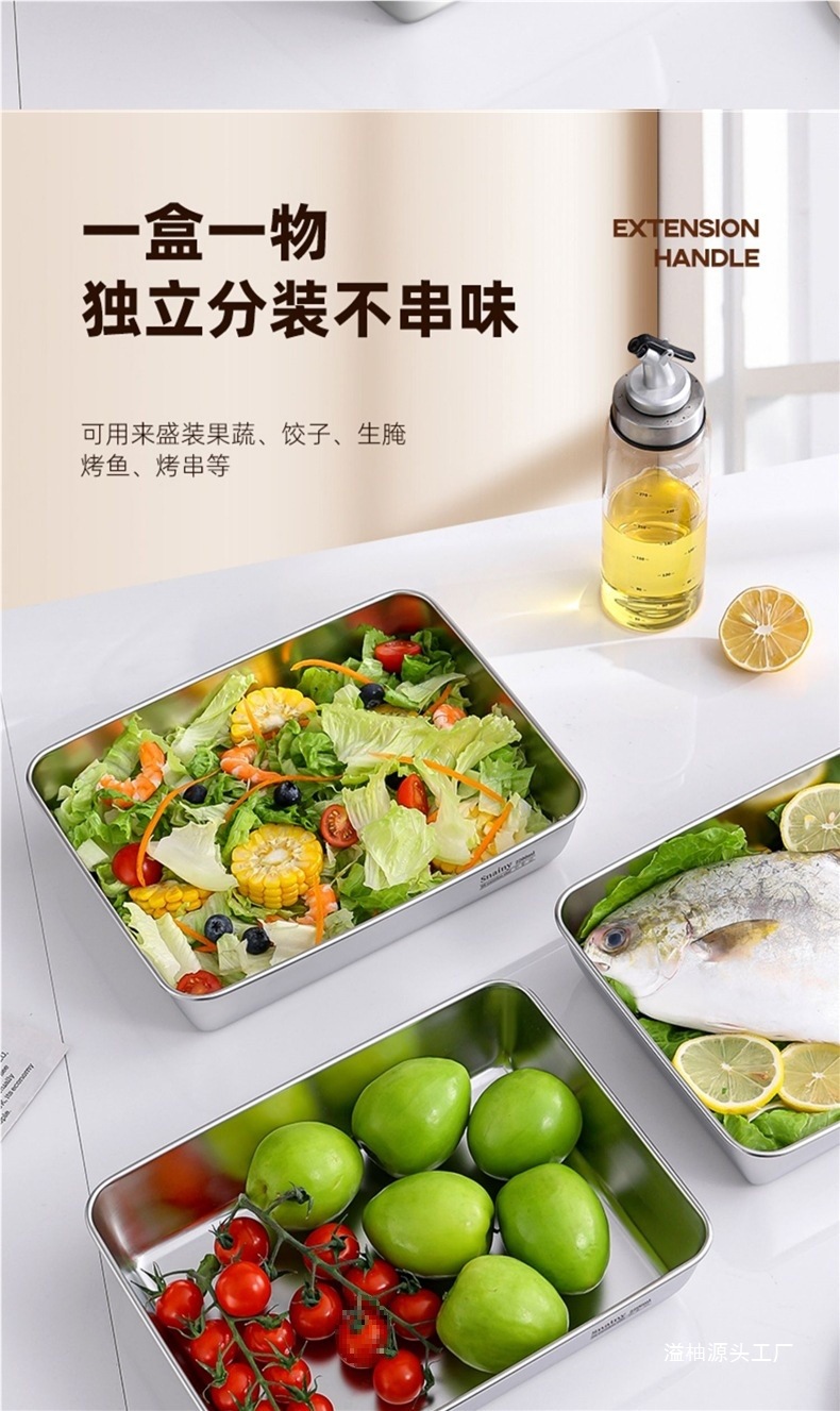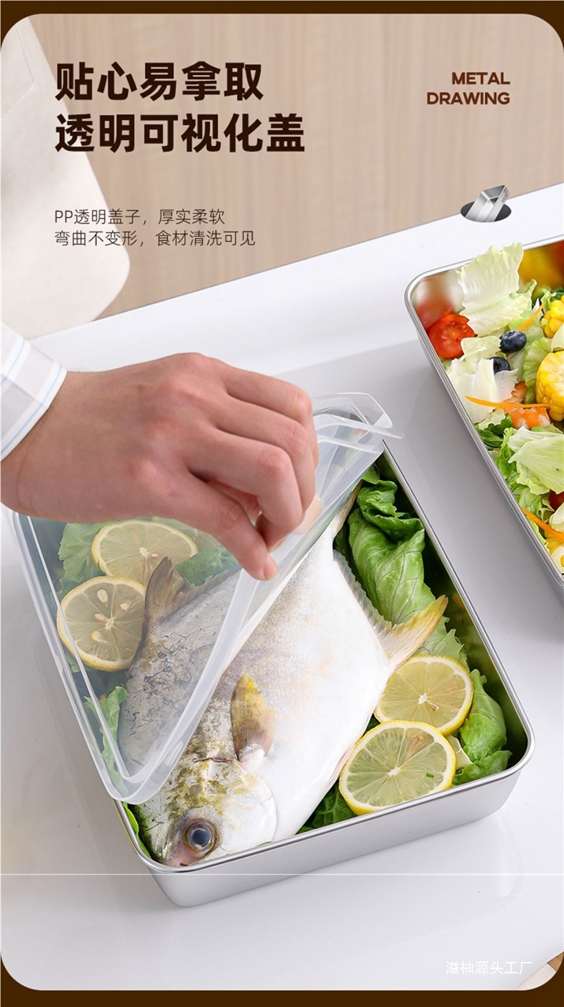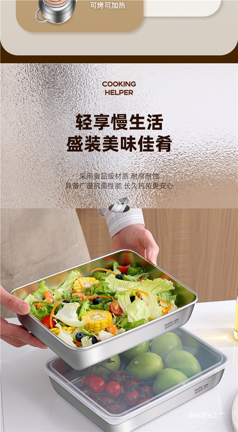 뚜껑이 있는 316 스테인리스 사각 접시, 304 트레이 사각 상자, 직사각형 접시, 두꺼운 조리 접시, 오렌지 오버플로스토어 가기