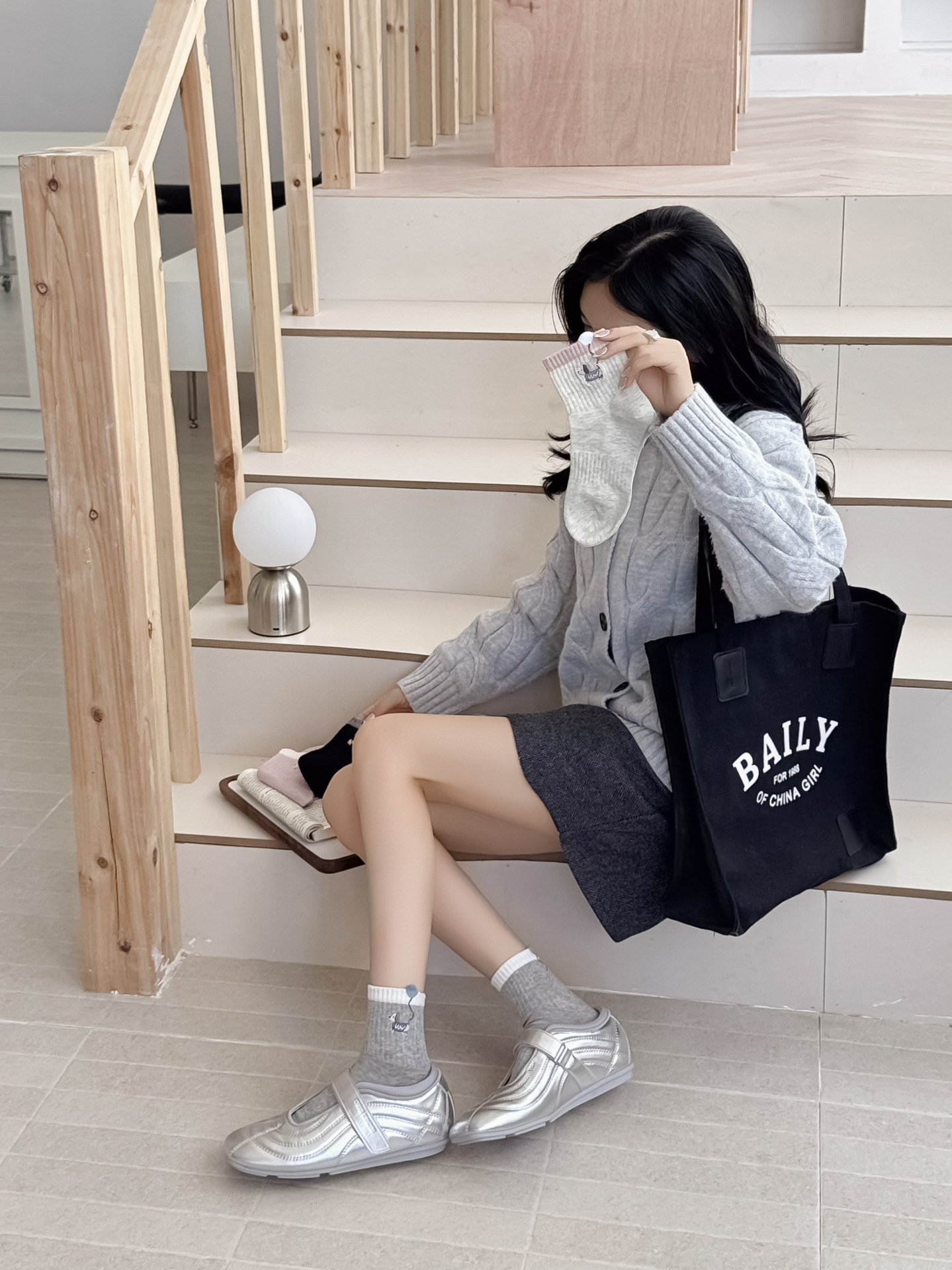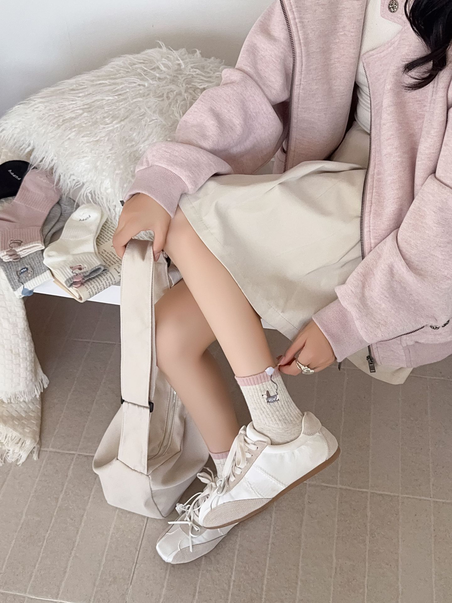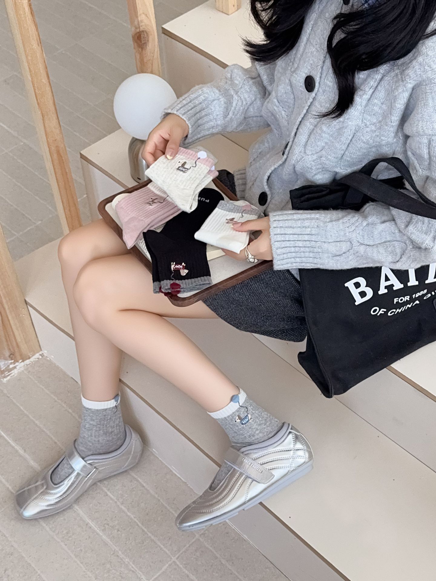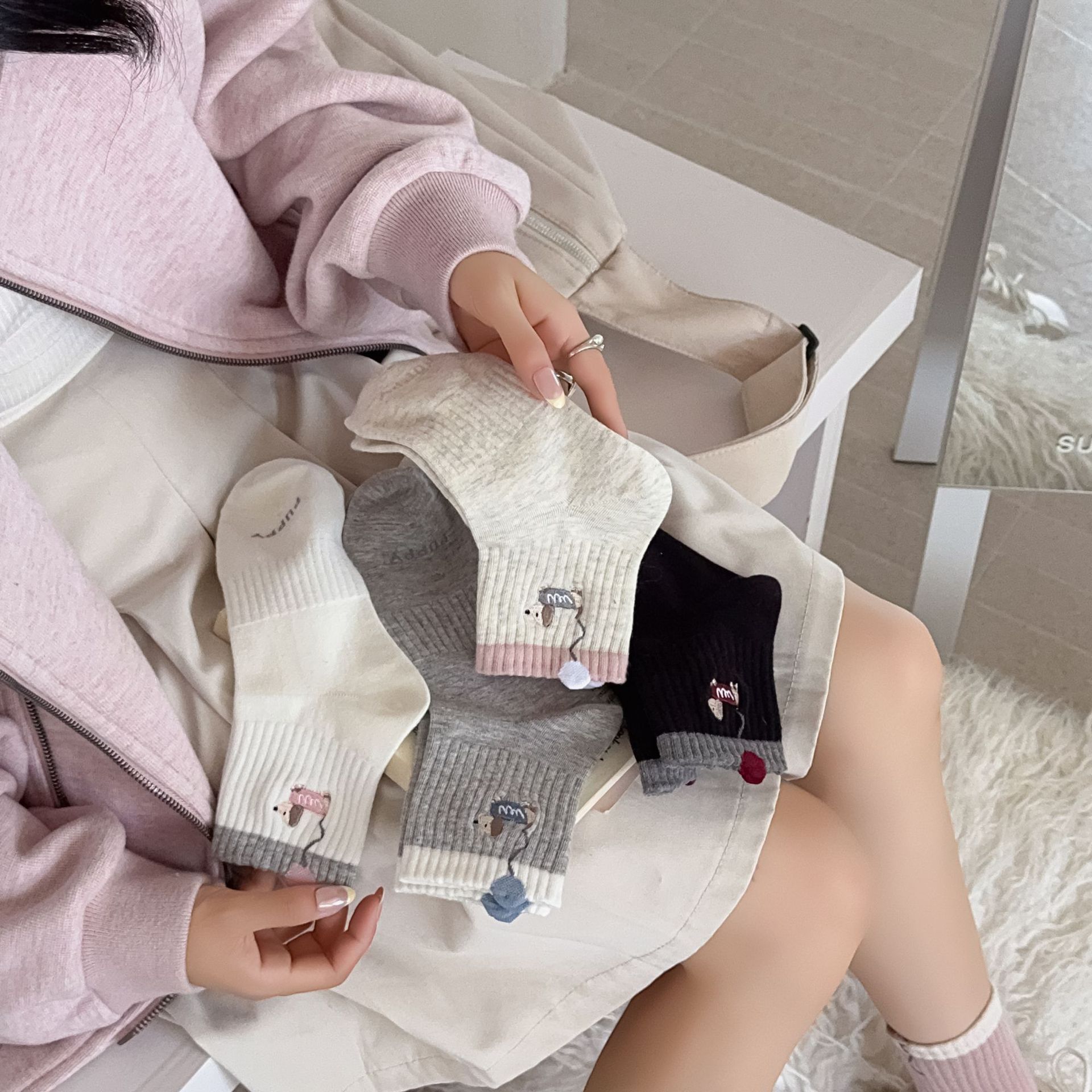 Little Tea Life 25 가을 겨울 양말 여성용 종아리 중간 양말 귀여운 강아지 자수 만화 풍선 다용도 대비 색상 미끄럼 방지스토어 가기