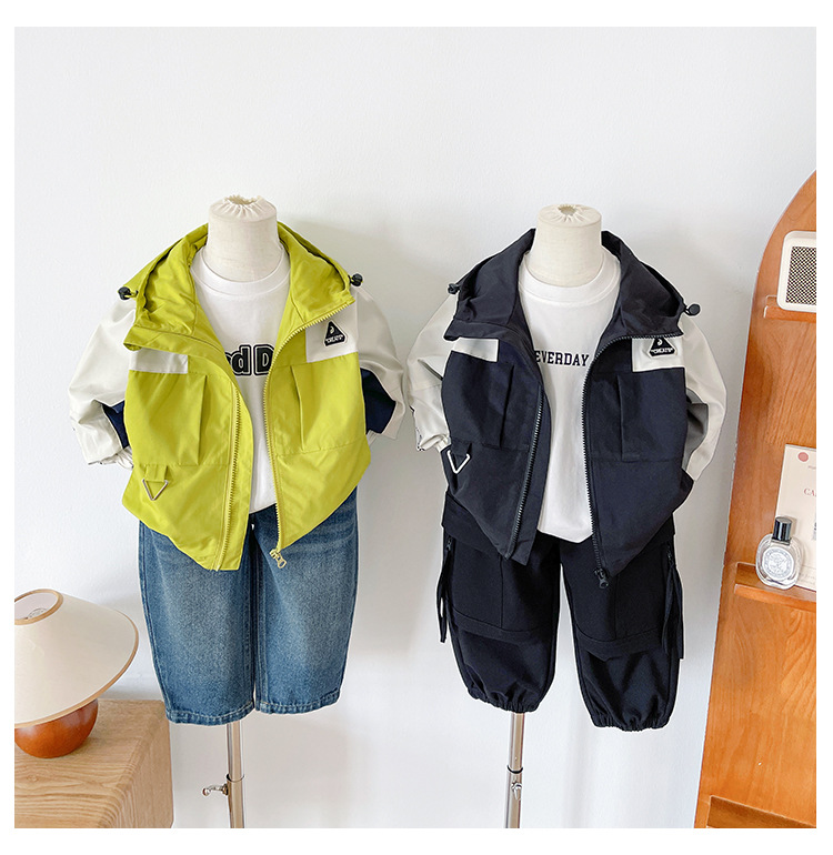 Nausicaa of the Valley 2025 가을 신작 아동복 아동 일본식 대비 색상 작업복 재킷 소년 다용도 후드 재킷스토어 가기
