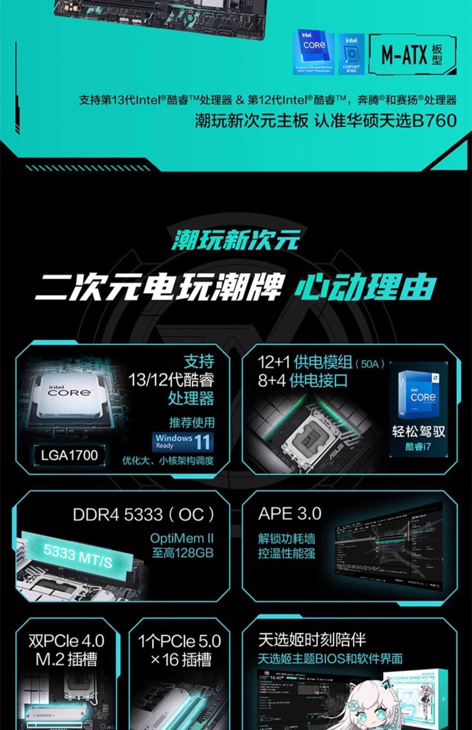 CPU 12600KF/13600KF에 적합한 ASUS TX GAMING B760M WIFI D4 마더보드