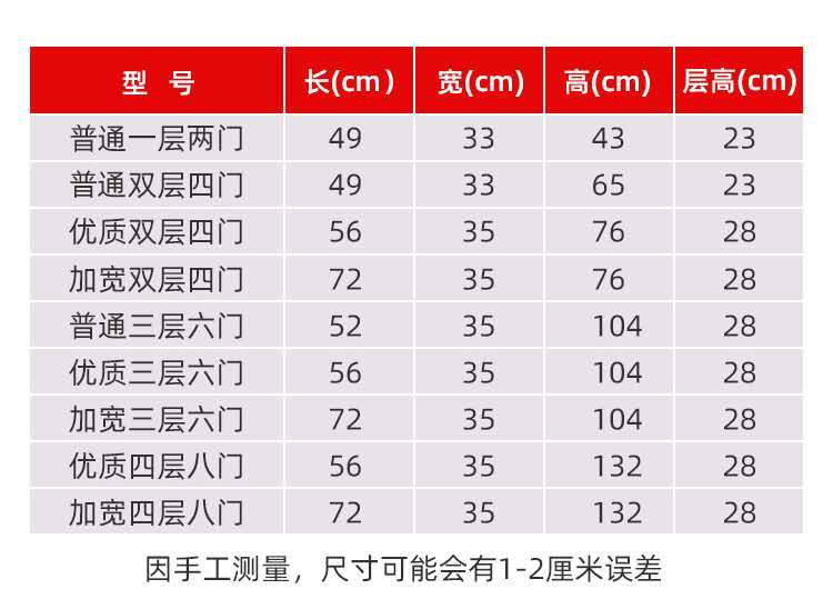 • 일반 3층 6도어 차이니즈 레드 52*35*104